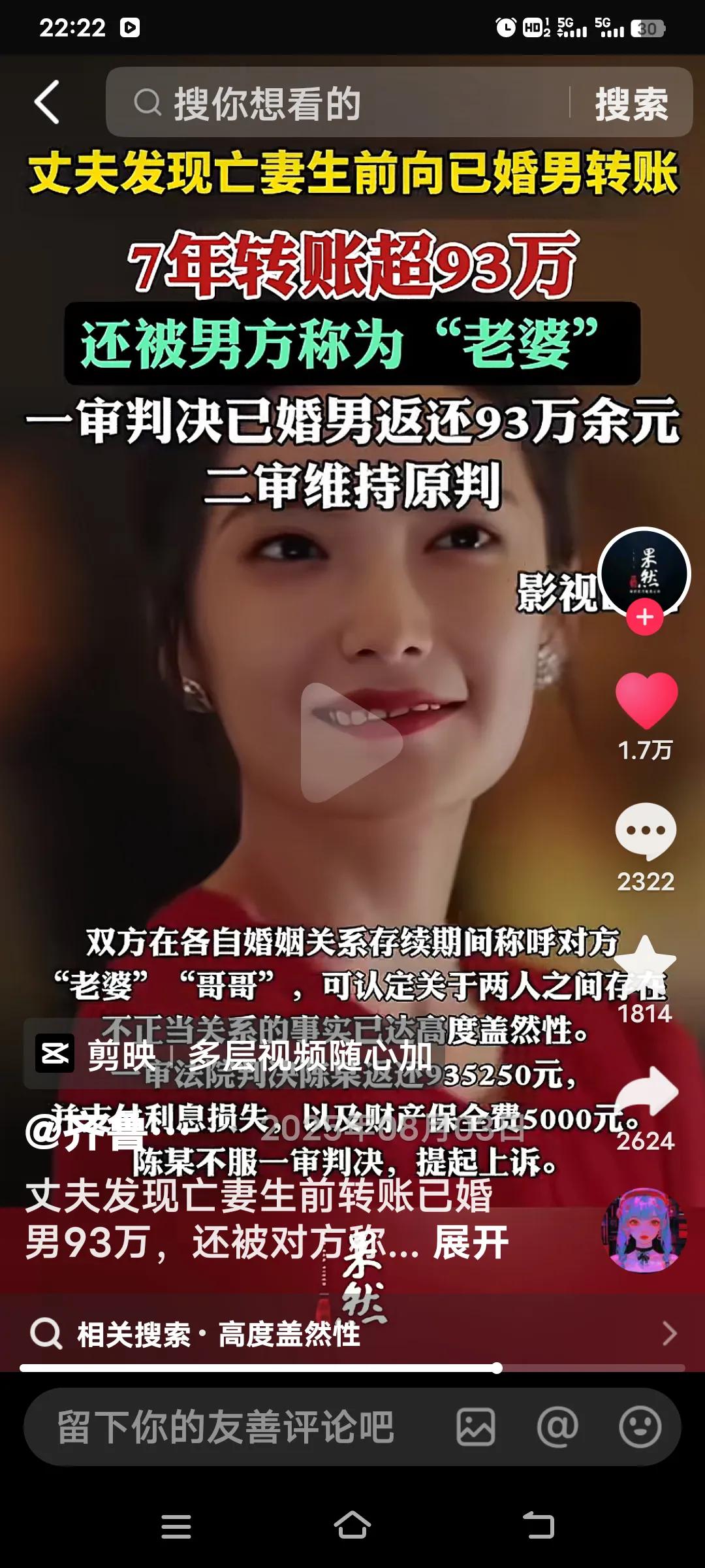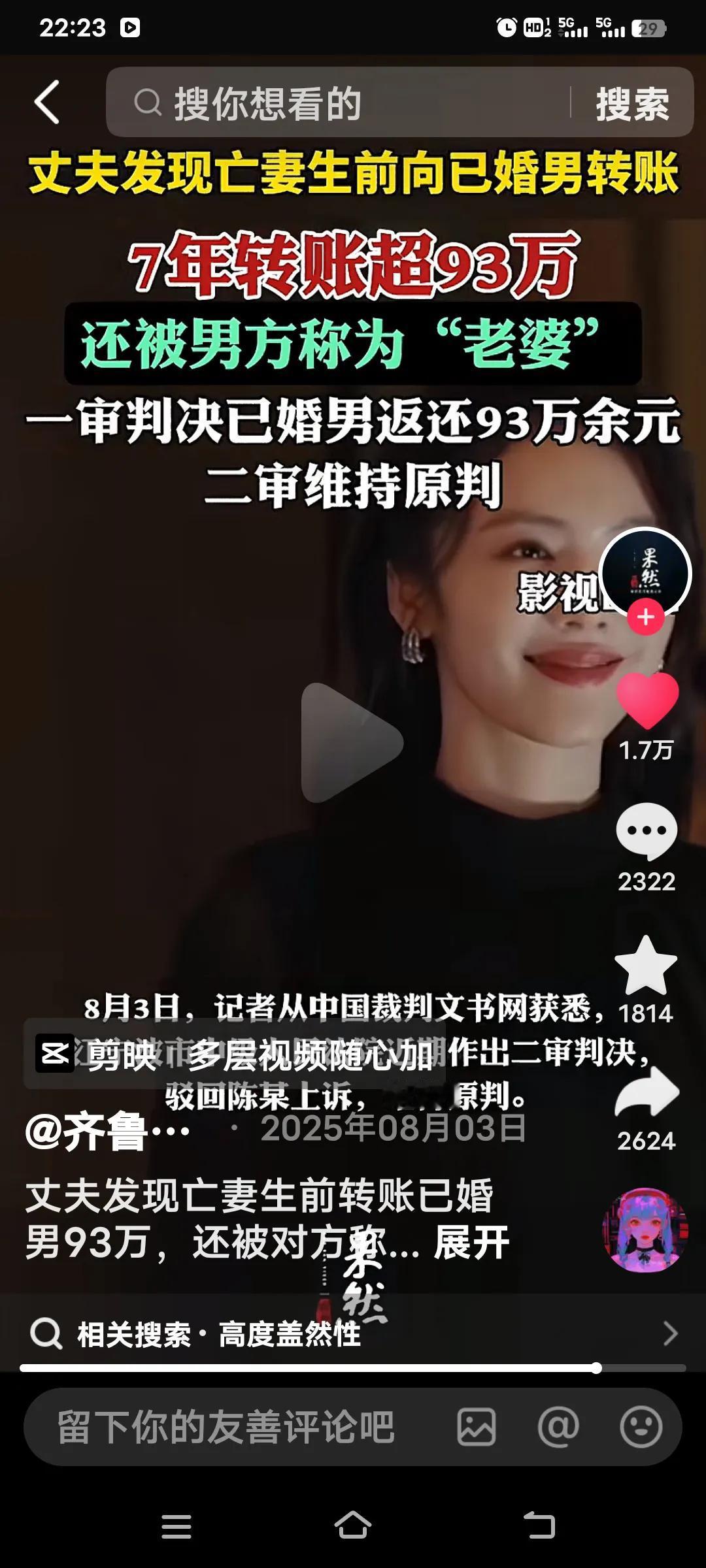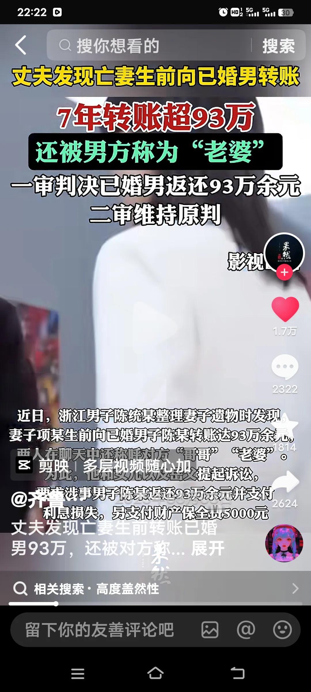 这事儿着实令人唏嘘不已。丈夫竟发现亡妻生前给一名已婚男子转了93万,这可不是一笔小数目。一审判决让对方归还这笔钱,也算是给丈夫一个交代。 浙江的陈统某在整理妻子遗物时,发现妻子项某生前向一个陌生男子转了93万元,从2016年到2023年,项某转账多达200余笔。要知道,93万或许是一个家庭多年的积蓄。亡妻背着丈夫做出这样的事,真让人好奇背后到底有何隐情。毕竟这可是夫妻共同财产啊! 从聊天记录能看出,对方一口一个“老婆”地叫着,而项某却称对方为“哥哥”。想来陈统某看到这些短信时,肯定是一脸懵,但此时他也顾不上这些了,当务之急是把钱要回来。可当他找到已婚男子陈某时,陈某却称这是合伙做生意的分红,但又拿不出证据。 陈统某一气之下将已婚男子陈某告上了法院。法院一审判决已婚男子返还93万余元。陈某不服一审判决,提起上诉。二审判决驳回陈某上诉,维持原判! 真不知该如何形容这个女人,做出这样的事,着实让丈夫寒透了心。还好事情被发现了,不然到她去世,丈夫都不知道妻子竟是这样的人。评论区有人说,女人死了,丈夫又得了93万,等各种看法,可关键是,这本来就是他的钱啊! 婚内资产遗产 丈夫财产