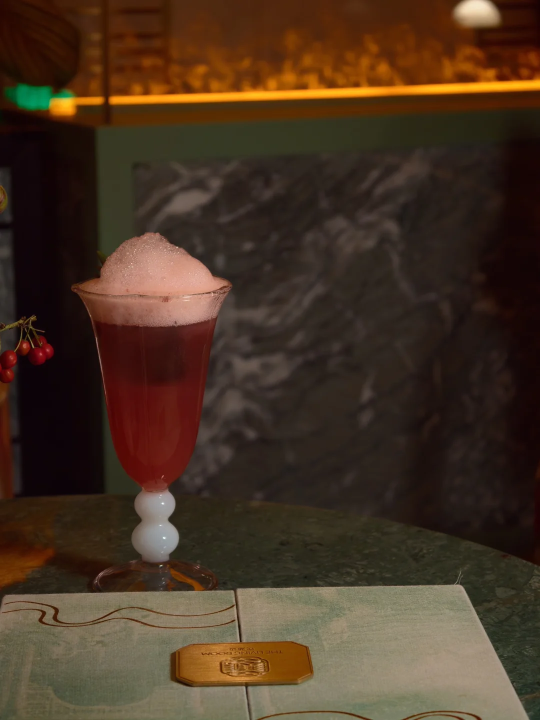 金酒做基底,揉进杨梅的清甜和紫苏的独特香气