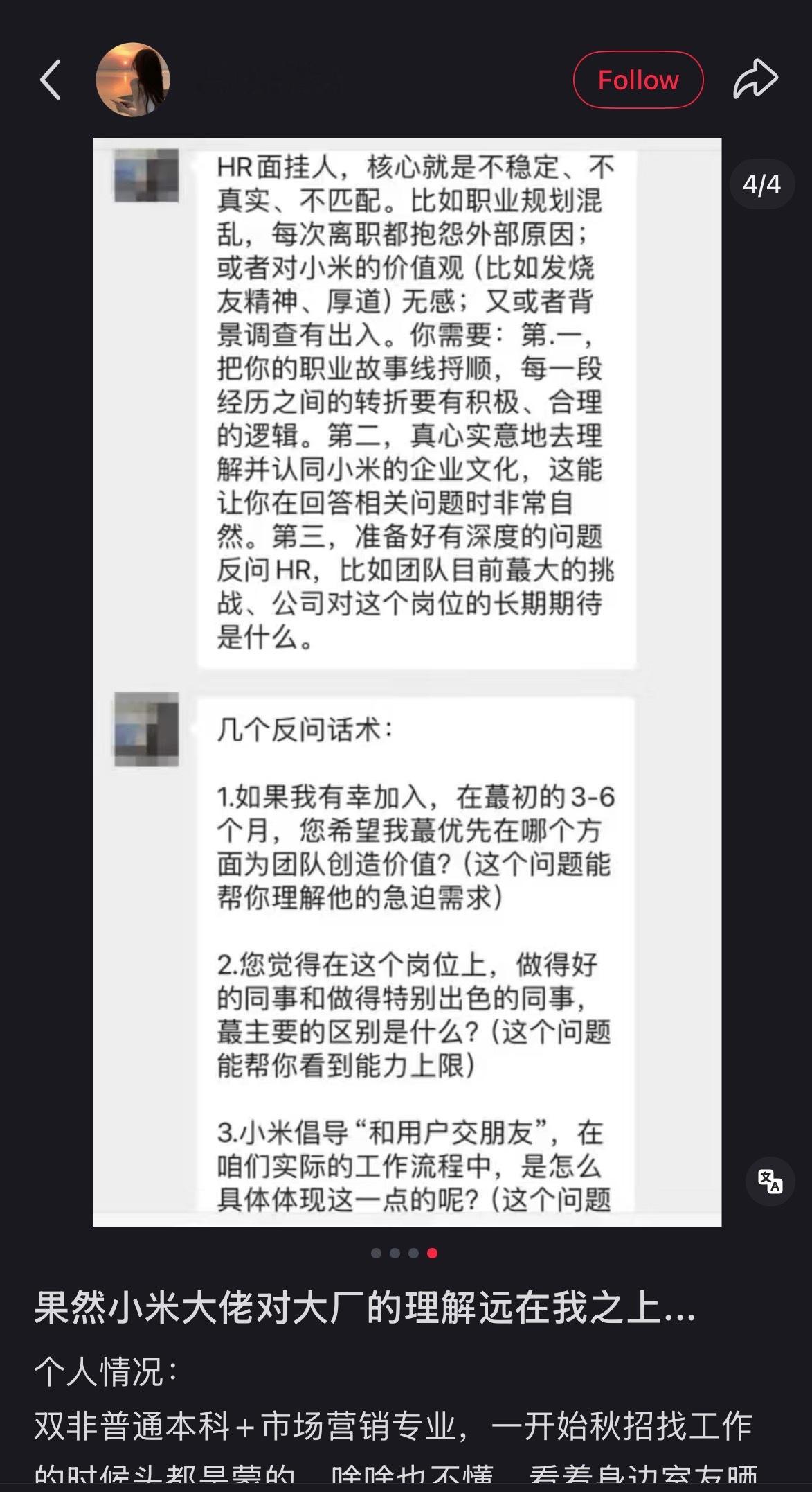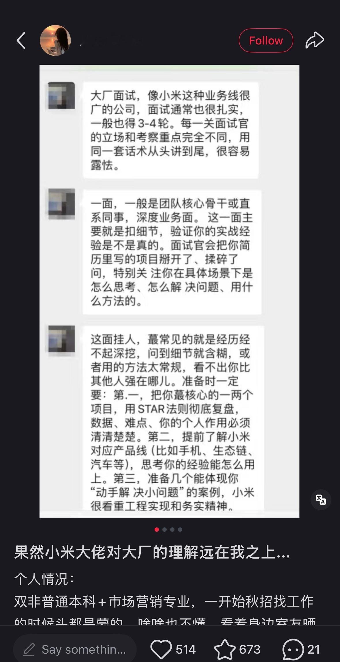 好像是某位小米大佬传出来的,小米公司面试经验真的看得出来,小米的面试很严格,也非常专业,整个公司的风气非常好。太牛逼了