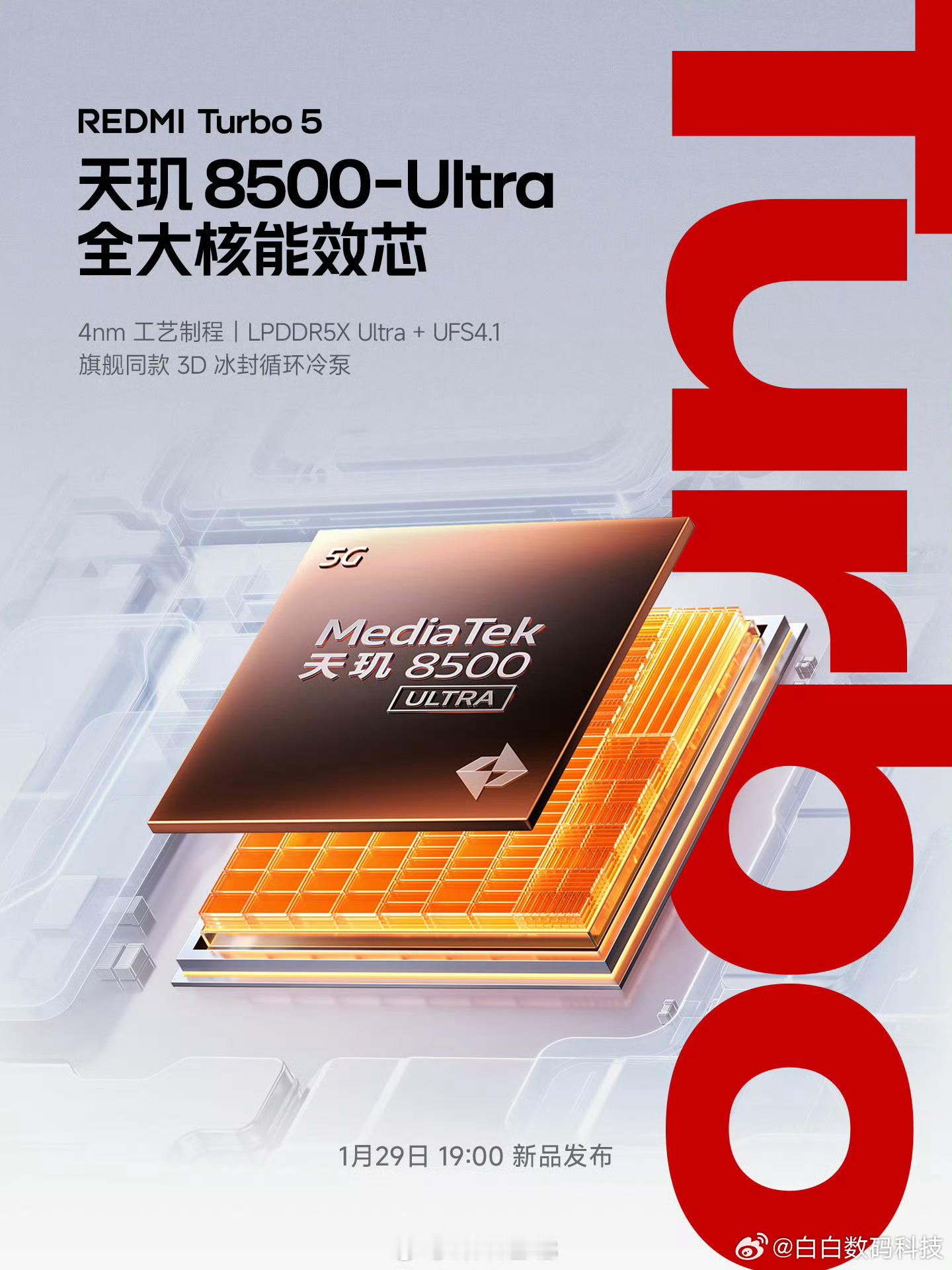 这代 REDMI Turbo 全系天玑处理器,标准版 2K 档,Max 2.5K 档:REDMI Turbo 5 首批搭载天玑 8500-UltraREDMI Turbo 5 Max 首发天玑 9500s