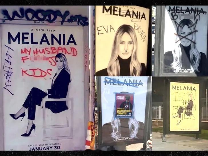 本周上映的<Melania>纪录片宣传海报在洛杉矶已毁。。。