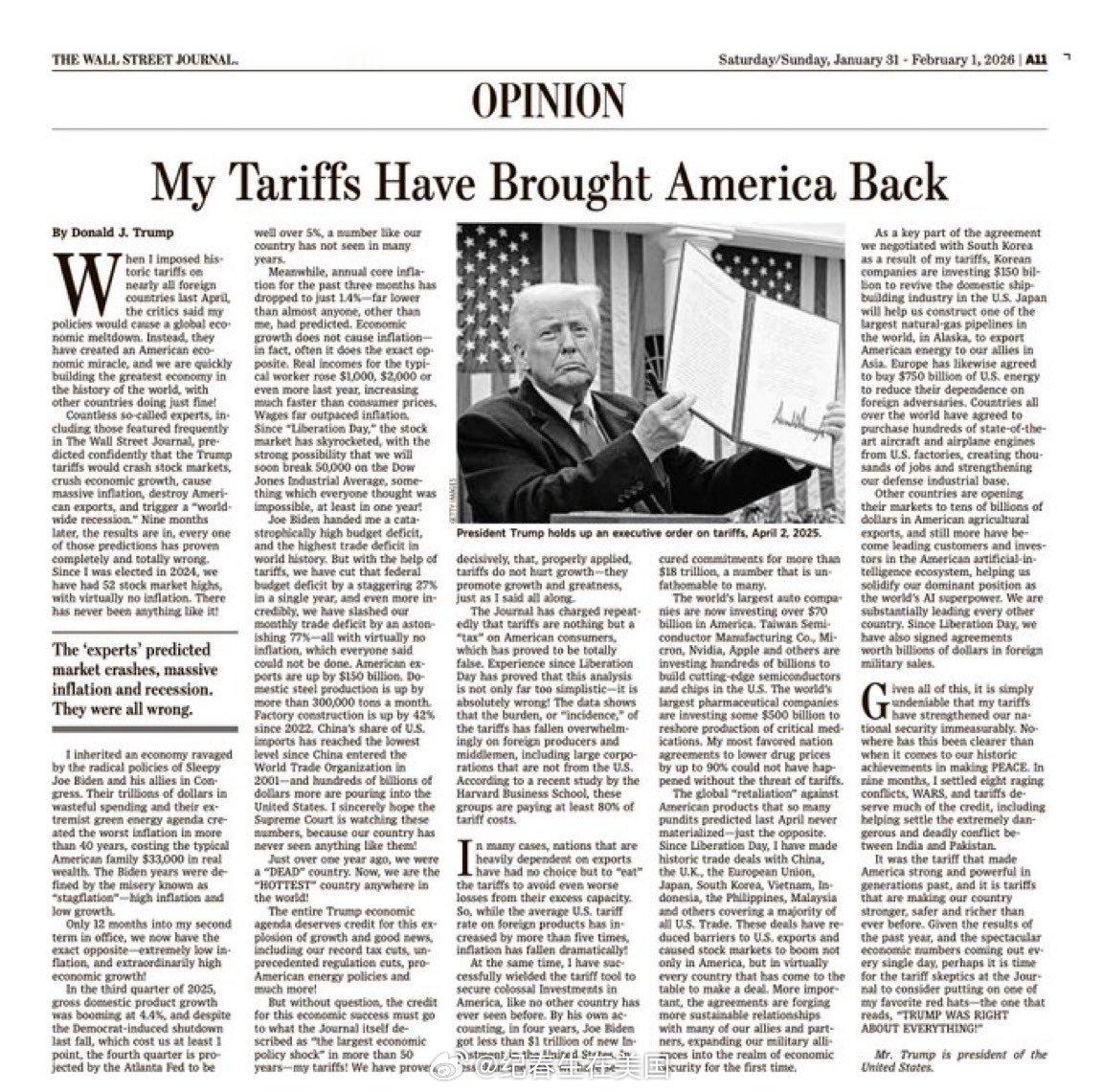 但毫无疑问,这一经济成功的最大功臣,是自己都称之为“50多年来最大经济政策冲击”的东西——我的关税政策!事实已经清楚地证明,只要运用得当,关税不仅不会伤害经济增长,反而会推动增长、成就伟大,这正如我一直以来所说的那样。