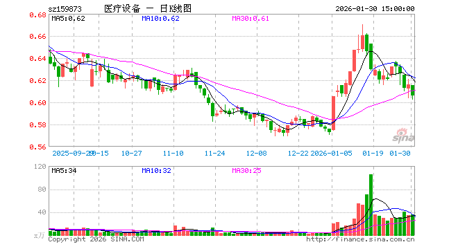 1月30日,医疗设备ETF(159873)跌1.62%,成交额2171.23万元。当日份额增加700.00万份,最新份额为4.17亿份,近20个交易日份额增加2.26亿份。最新资产净值计算值为2.52亿元。