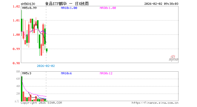 2月2日,食品ETF鹏华(560130)开盘跌0.30%,报0.990元。食品ETF鹏华(560130)重仓股方面,安记食品开盘跌1.43%,一鸣食品跌1.41%。