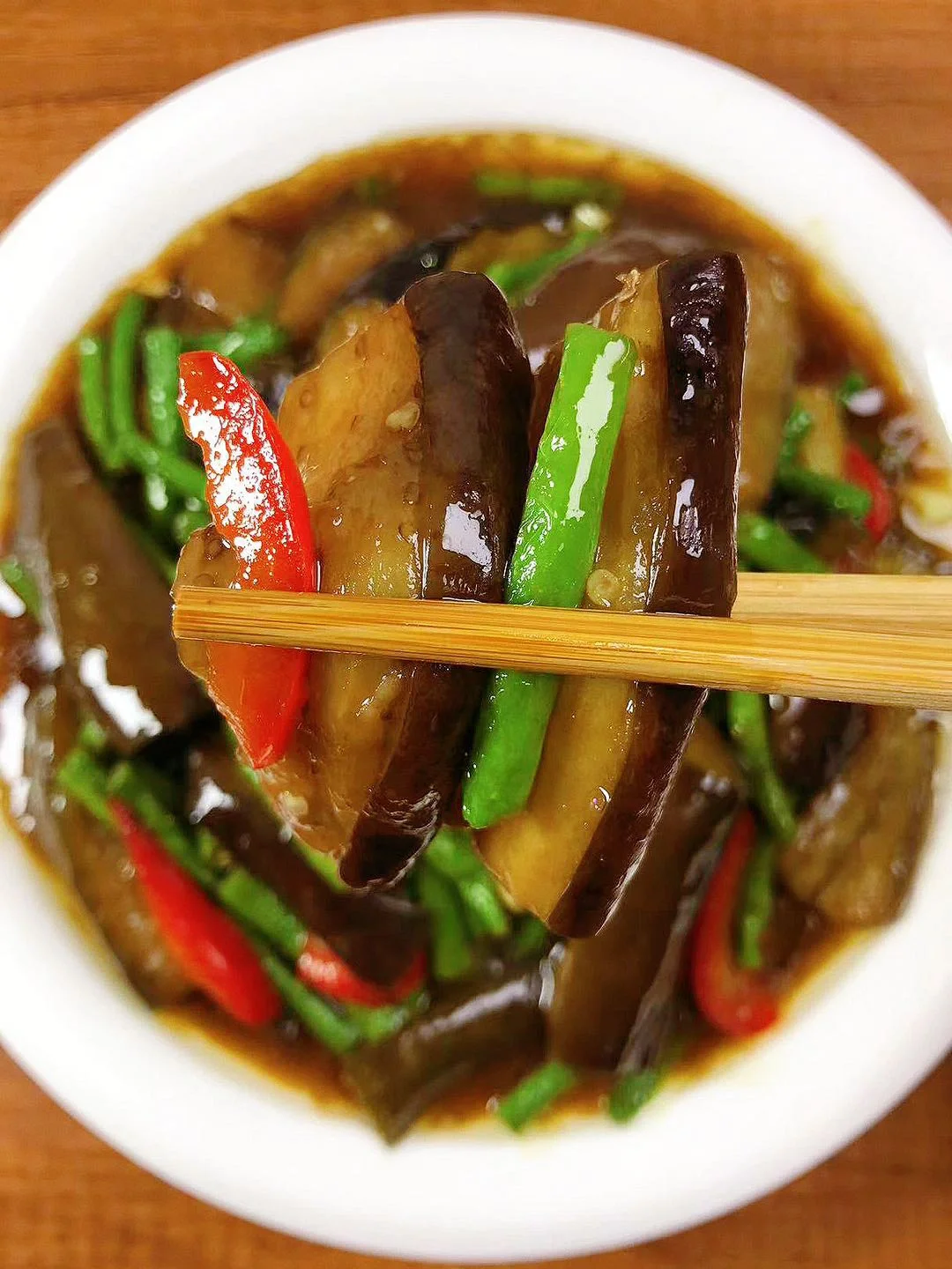 🌻今天分享一款茄子烧豆角!好吃下饭,做法简单!拌饭真的太好吃了!喜欢的赶紧试试吧! 🌻食材:茄子、长豆角、蒜、红椒(不辣,可不放) 🌻做法: 1.茄子洗净切成条;长豆角洗净切段备用;料汁:3勺生抽、1勺蚝油、半勺老抽、适量盐、白糖、1勺淀粉、半碗清水拌匀备用 2.油温6成热(宽油),倒入豆角炒至微皱盛出,留底油,倒入茄子炒软盛出备用 3.锅中热油,放入蒜、红椒炒香,倒入茄子、豆角炒匀,最后倒入料汁炒1~2分钟即可