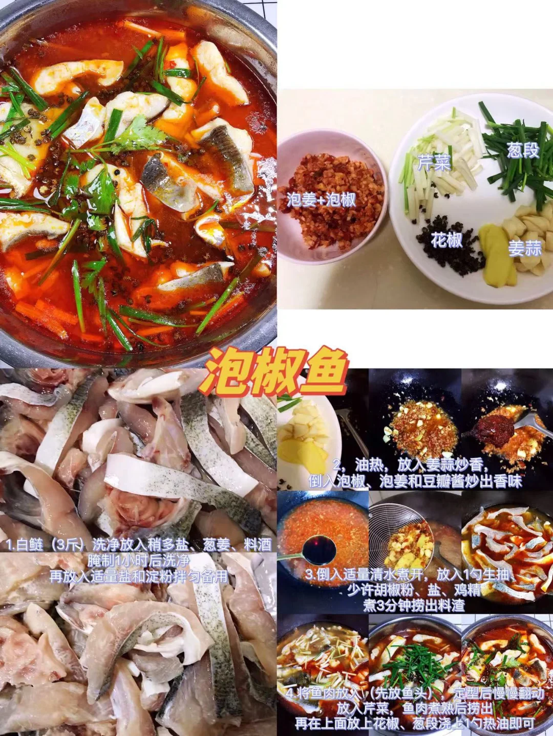 [赞R]大家好呀!给大家分享54道年夜饭菜谱合集,再过几个月2024年的春节就要到了,收藏起来慢慢学!老人小孩都爱吃! 1.糖醋排骨 2.葱香虾球 3.盐水鸭 4.白萝卜炖排骨 5.糯米丸子 6.鸡蛋羹 7.红烧肉炖粉条 8.香辣龙虾尾 9.芸豆红烧肉 10.麻婆豆腐 11.椒盐虾 12.爆炒扇贝肉 13.红烧鸭子 14.宫保鸡丁 15.椒盐皮皮虾 16.泡椒鱼 17.姜爆鸭 18.白灼大虾