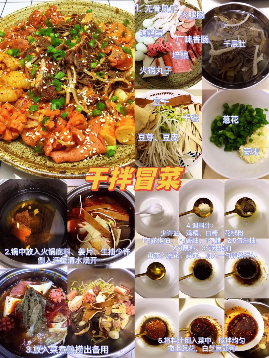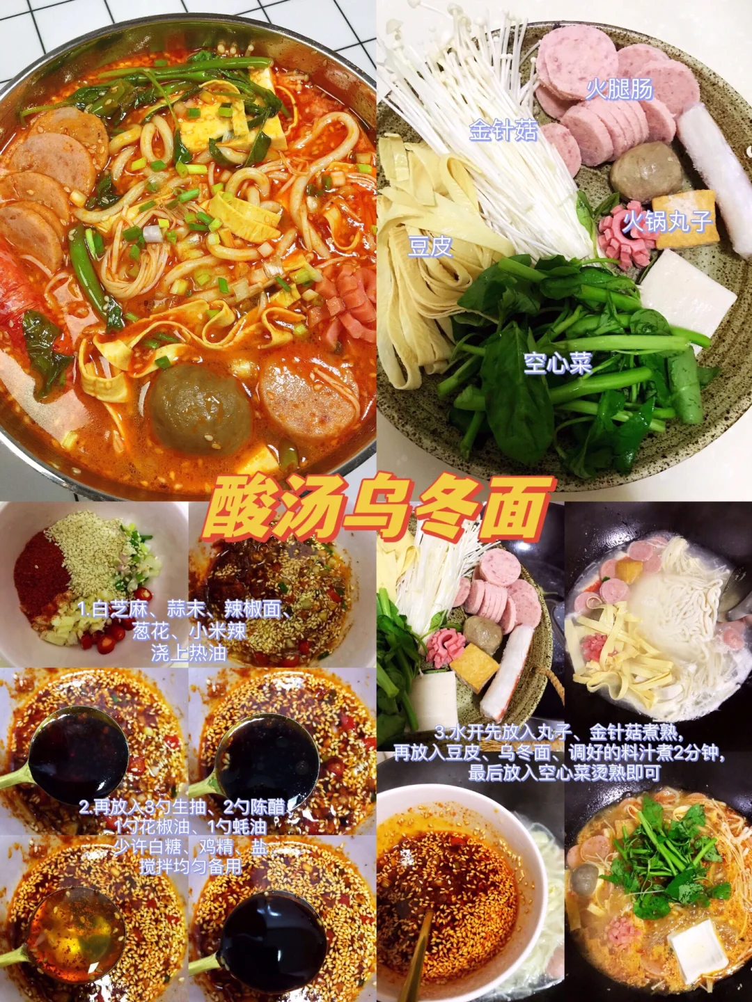 随机抽查相册里的美食 翻看图片有详细教程哟! 1⃣️黑椒土豆肥牛饭 2⃣️牛奶麻辣烫 3⃣️炒面 4⃣️酸汤乌冬面 5⃣️酸汤水饺 6⃣️干拌冒菜