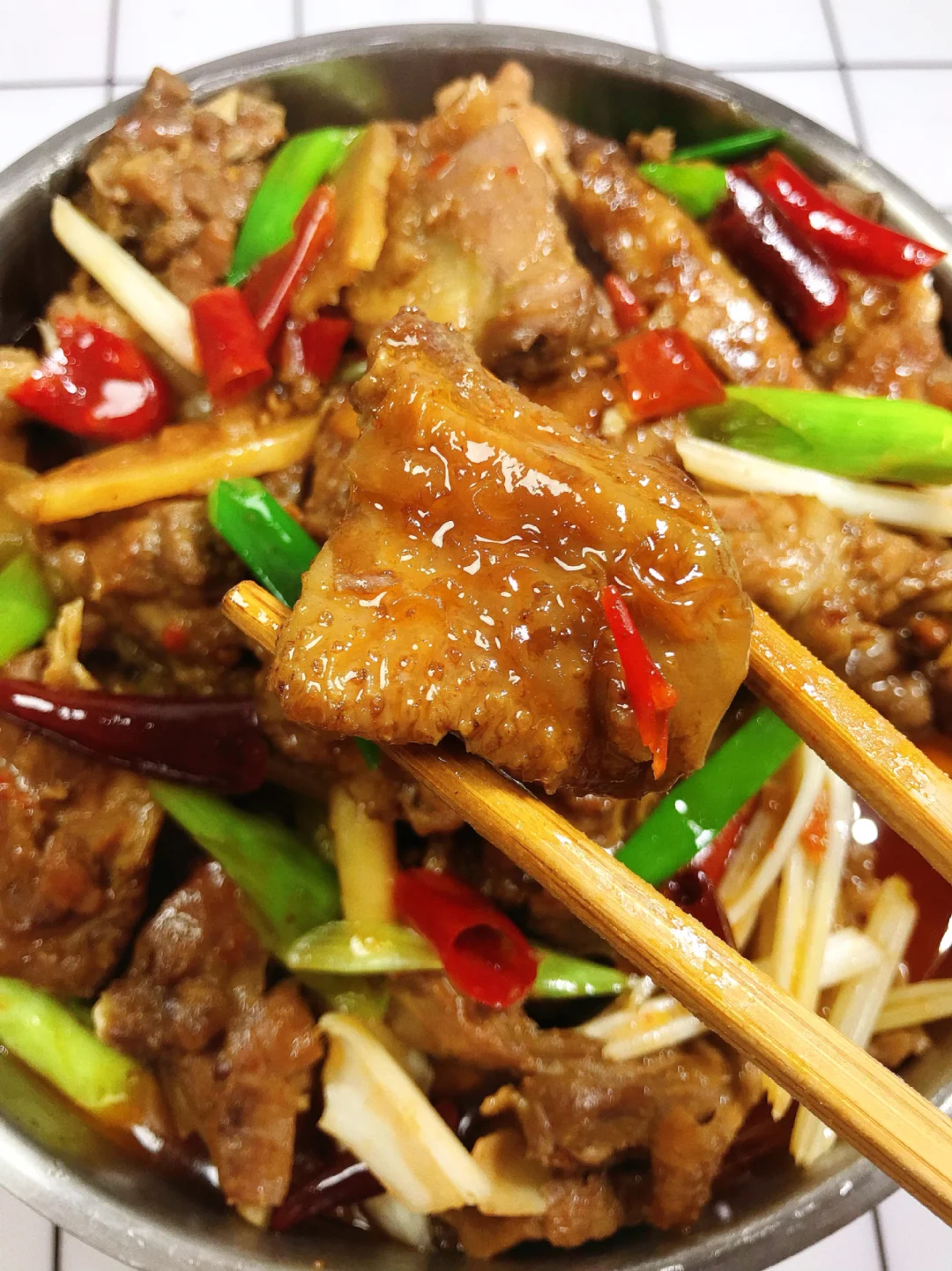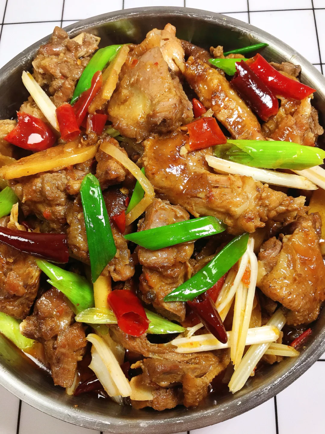 1⃣️鸡公(切成块)洗净,放入小勺盐腌制片刻;姜蒜、白芹、大葱、干花椒、干辣椒、泡椒等切好备用;油热(宽油),放入鸡肉煸炒至油清亮(大概8-10分钟)盛出备用