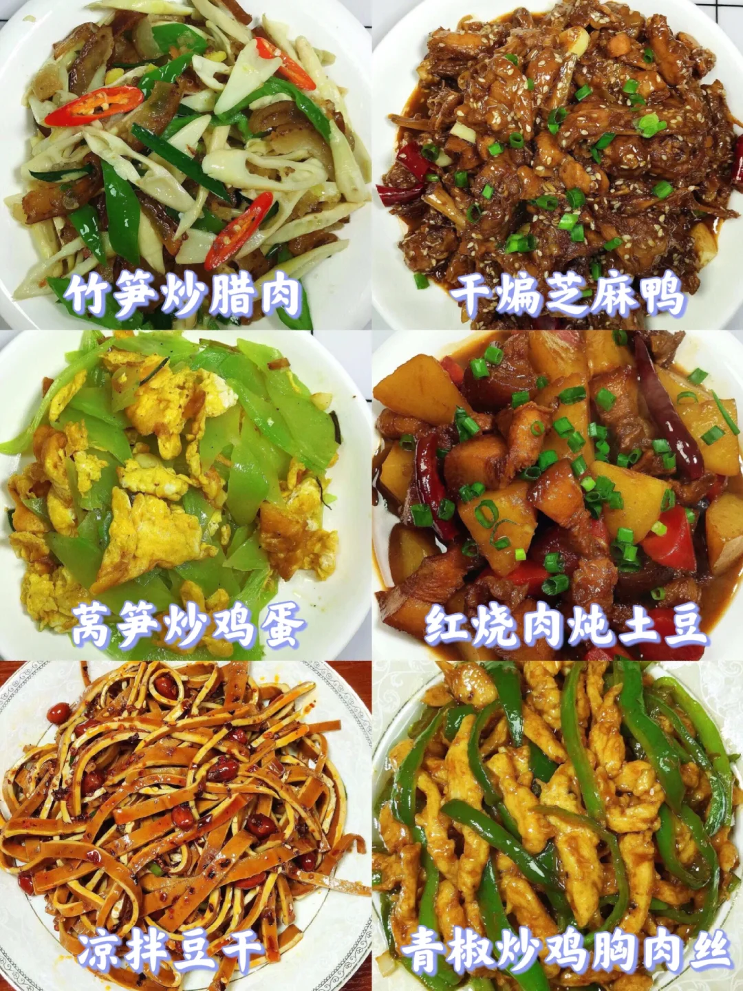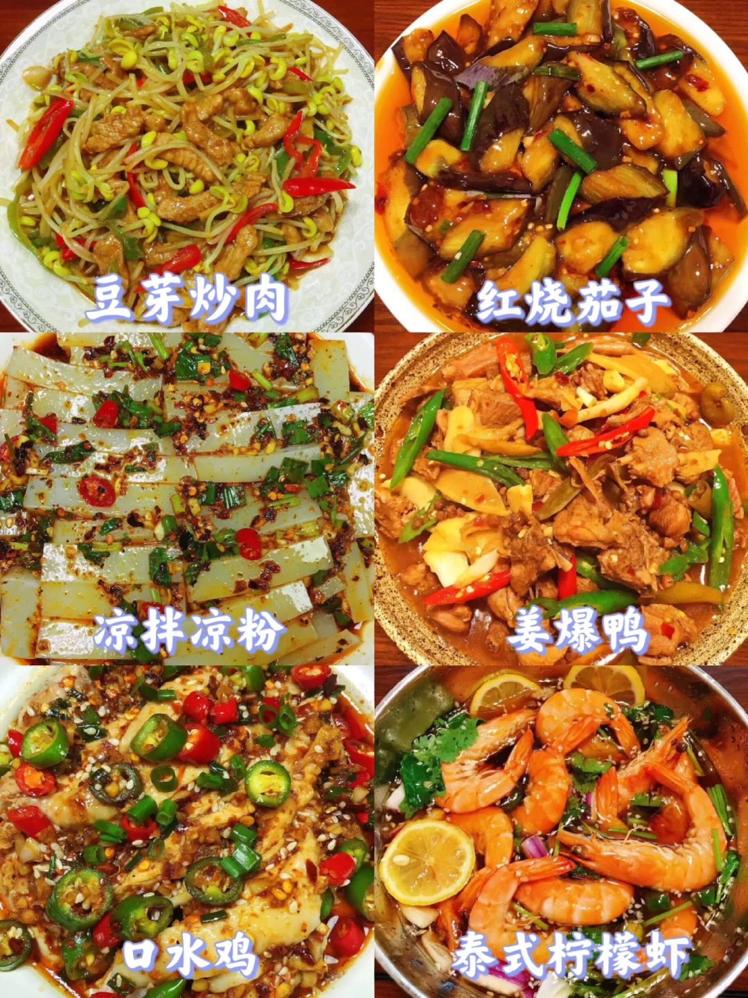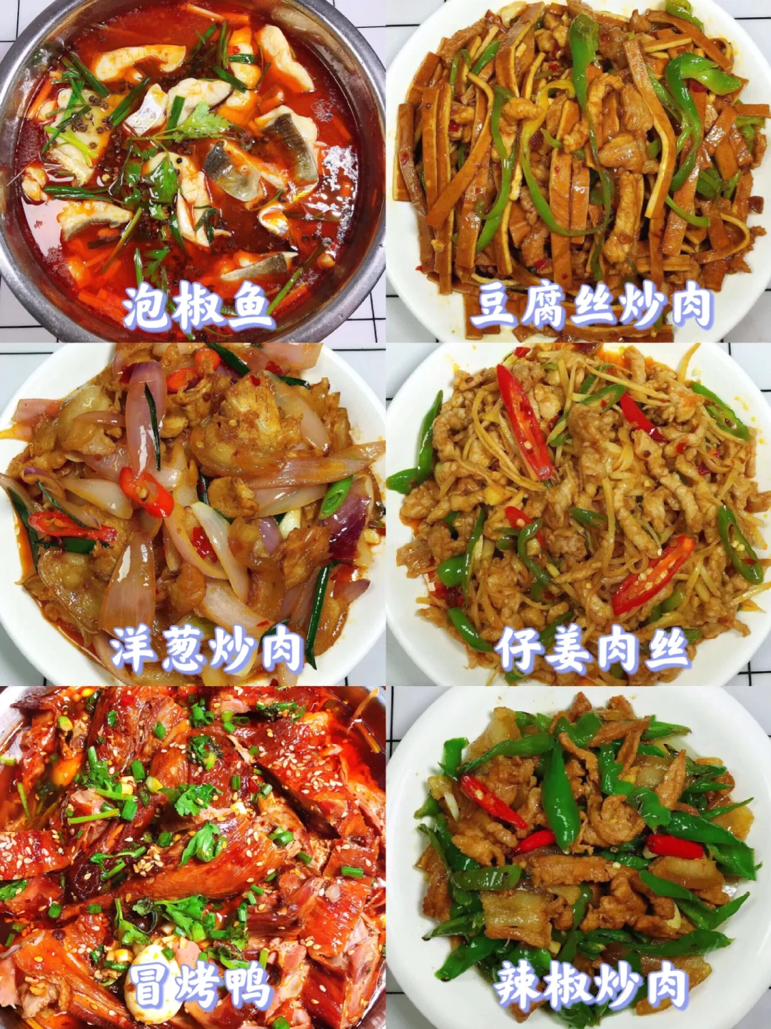 [赞R]大家好呀!给大家整理了超级好吃的家常菜合集,下饭又营养!做法大家可以进主页翻看之前的笔记,每款菜都有详细的教程哦! 图2⃣️ 豆芽炒肉 红烧茄子 凉拌凉粉 姜爆鸭 口水鸡 泰式柠檬虾 图3⃣️ 宫保鸡丁 大盘鸡 椒盐皮皮虾 金汤肉片 糖醋鸡丁 芋儿鸡 图4⃣️ 泡椒鱼 豆腐丝炒肉 洋葱炒肉 仔姜肉丝 冒烤鸭 辣椒炒肉 图5⃣️ 竹笋炒腊肉 干煸芝麻鸭 莴笋炒鸡蛋 红烧肉炖土豆 凉拌豆干 青椒炒鸡胸肉丝