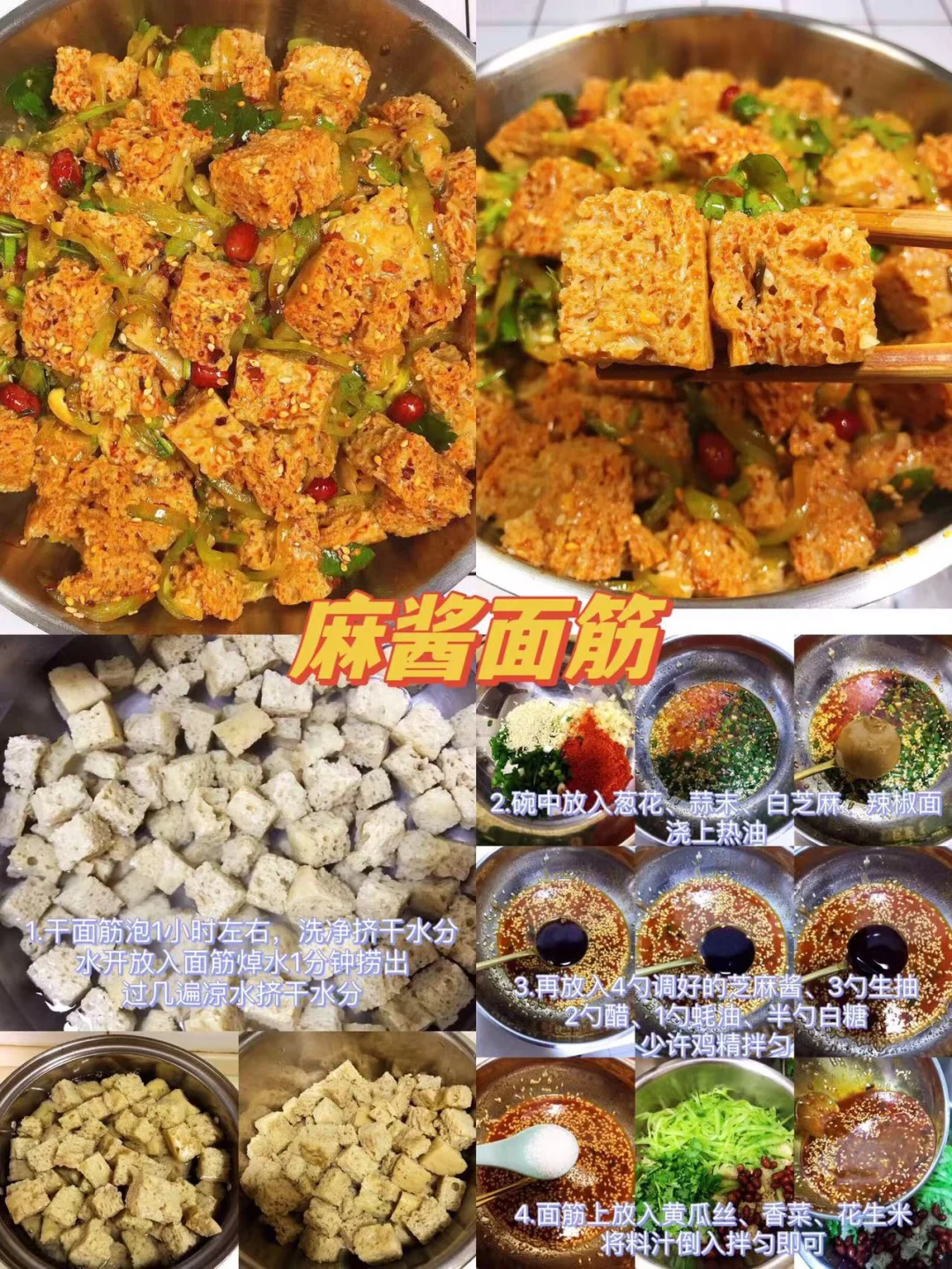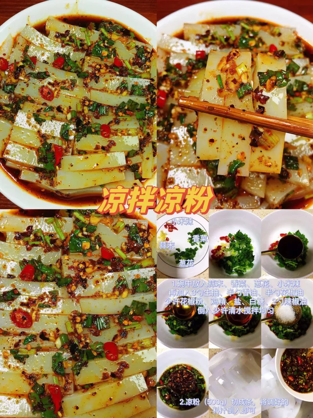 [赞R]今天给大家整理了九款超级好吃的凉拌菜合集!每天不知道吃什么的小伙伴可以参考一下这个食谱哦!每天不重样! [赞R]每一款都有详细的教程哦!翻看图片就能看见! 1.凉拌豆干 2.鸡丝凉面 3.凉拌莴笋 4.蒜香鸡爪 5.泰式柠檬虾 6.凉拌凉粉 7.口水鸡 8.麻酱面筋 9.凉拌平菇