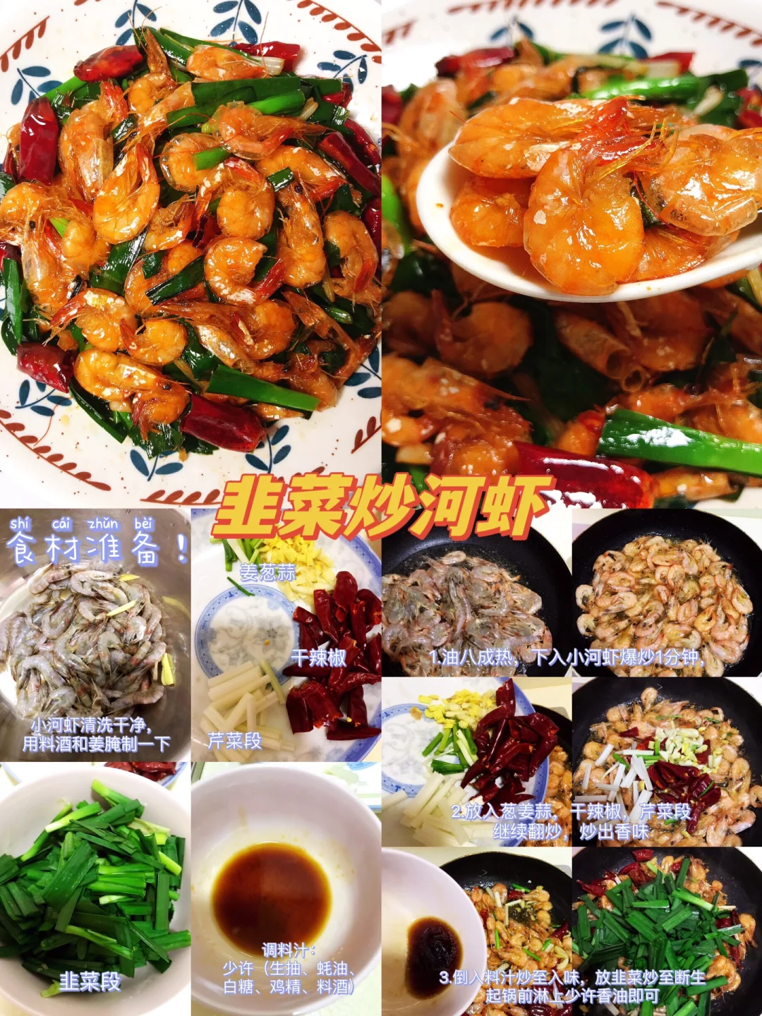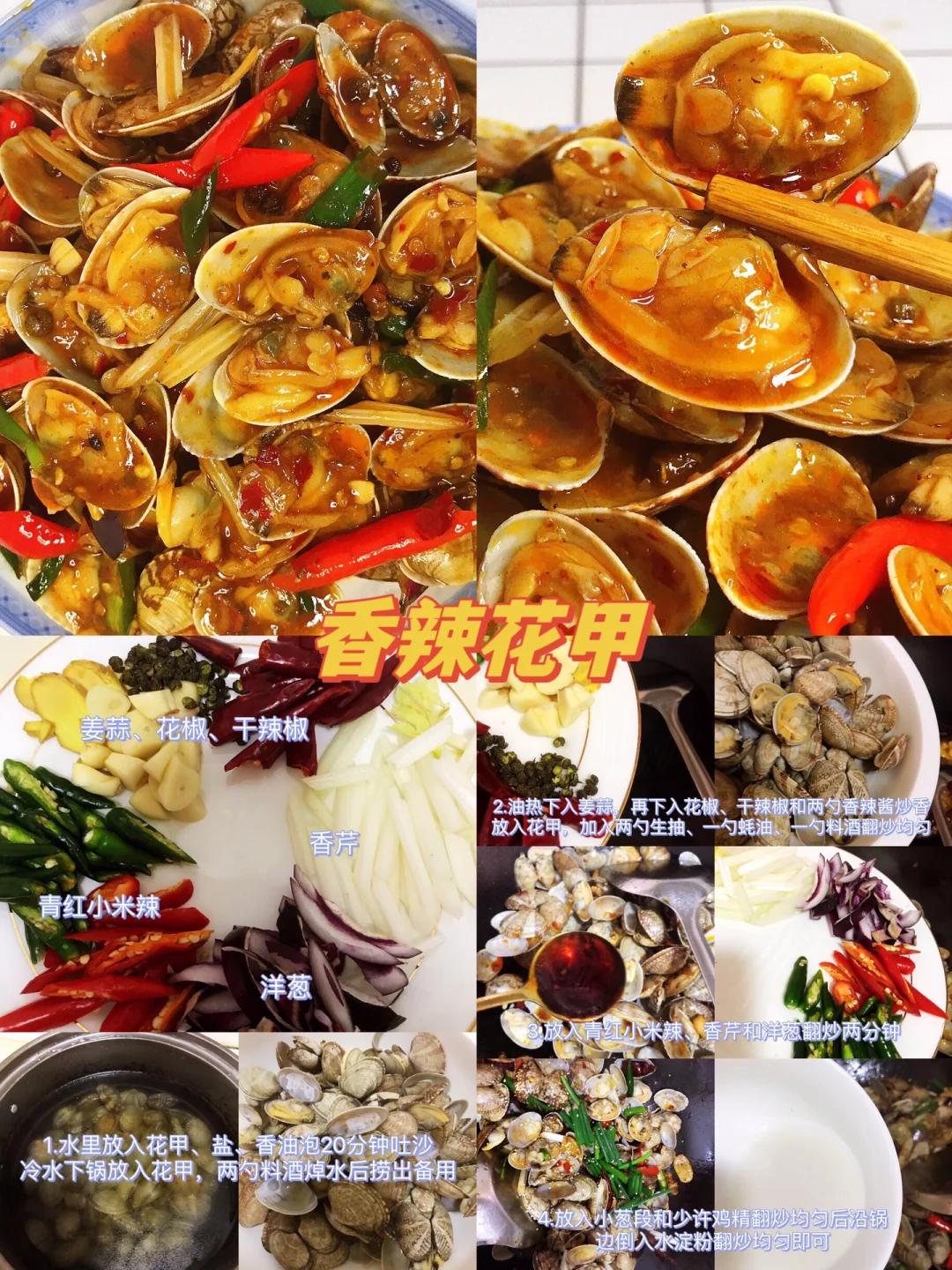 [赞R]今天给大家整理了16款超级好吃的家常菜合集!每天不知道吃什么的小伙伴可以参考一下这个食谱哦!每天不重样! 1.香辣龙虾尾 2.尖椒鸡 3.红烧肥肠 4.香辣花甲 5.小炒黄牛肉 6.韭菜炒小河虾 7.青椒焖鱼 8.蒜香排骨 9.金针菇培根卷 10.韭黄炒蛋 11.干锅土豆片 12.番茄炒蛋 13.三色炒虾仁 14.番茄玉米排骨汤 15.梅干菜烧肉 16.焖豆腐