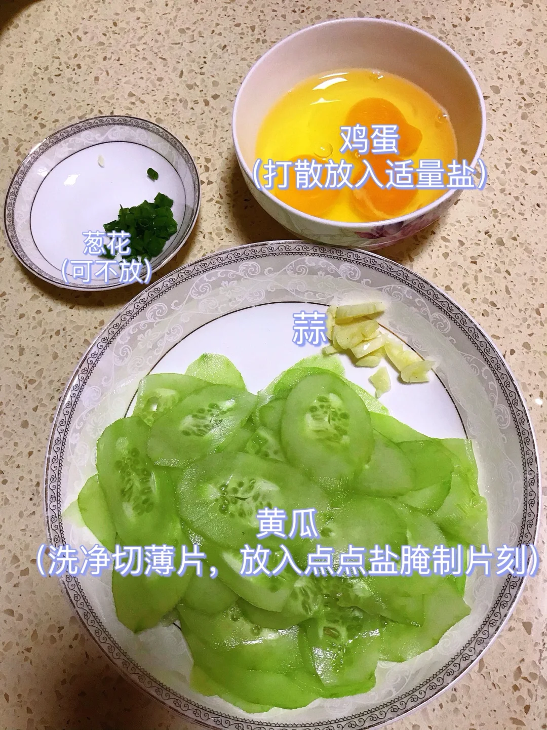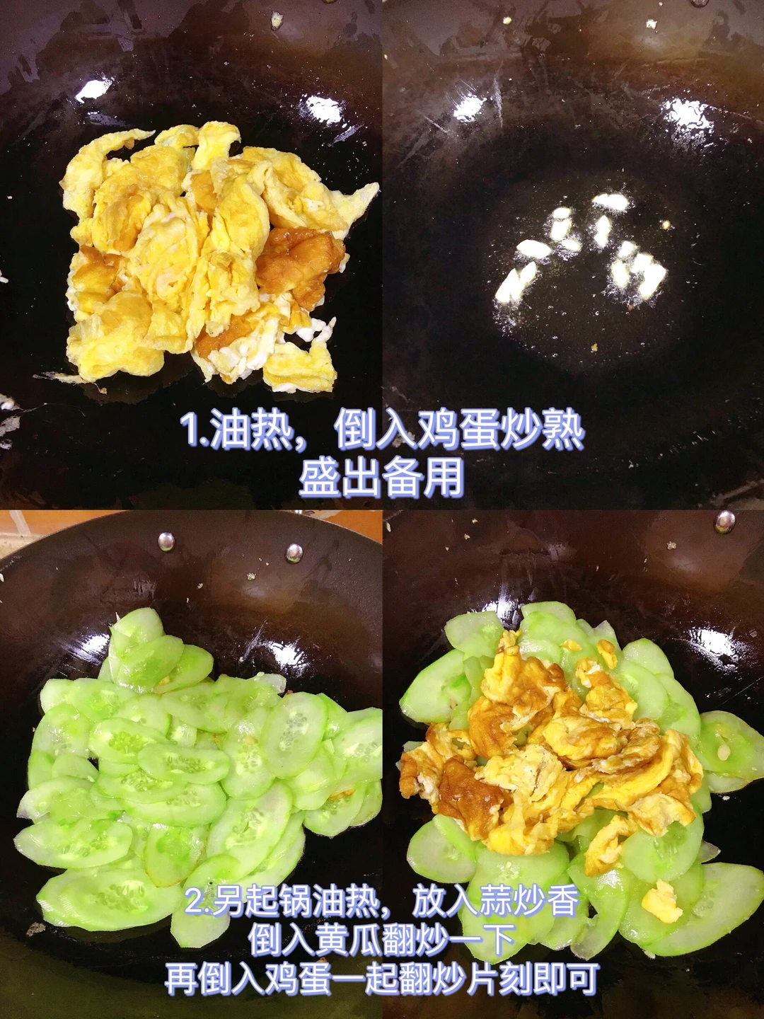[赞R]今天分享一款黄瓜炒鸡蛋!清爽解腻,好吃下饭,做法超级简单!喜欢的赶紧试试吧! [赞R]食材:黄瓜、鸡蛋、蒜、 [赞R]做法: 1.黄瓜洗净切成薄片,放入丢丢盐腌制片刻;鸡蛋打散放入适量盐搅匀,葱蒜切好备用 2.油热,倒入鸡蛋炒熟盛出备用 3.另起锅油热,放入蒜炒香,倒入黄瓜翻炒一下,再倒入鸡蛋一起翻炒均匀即可
