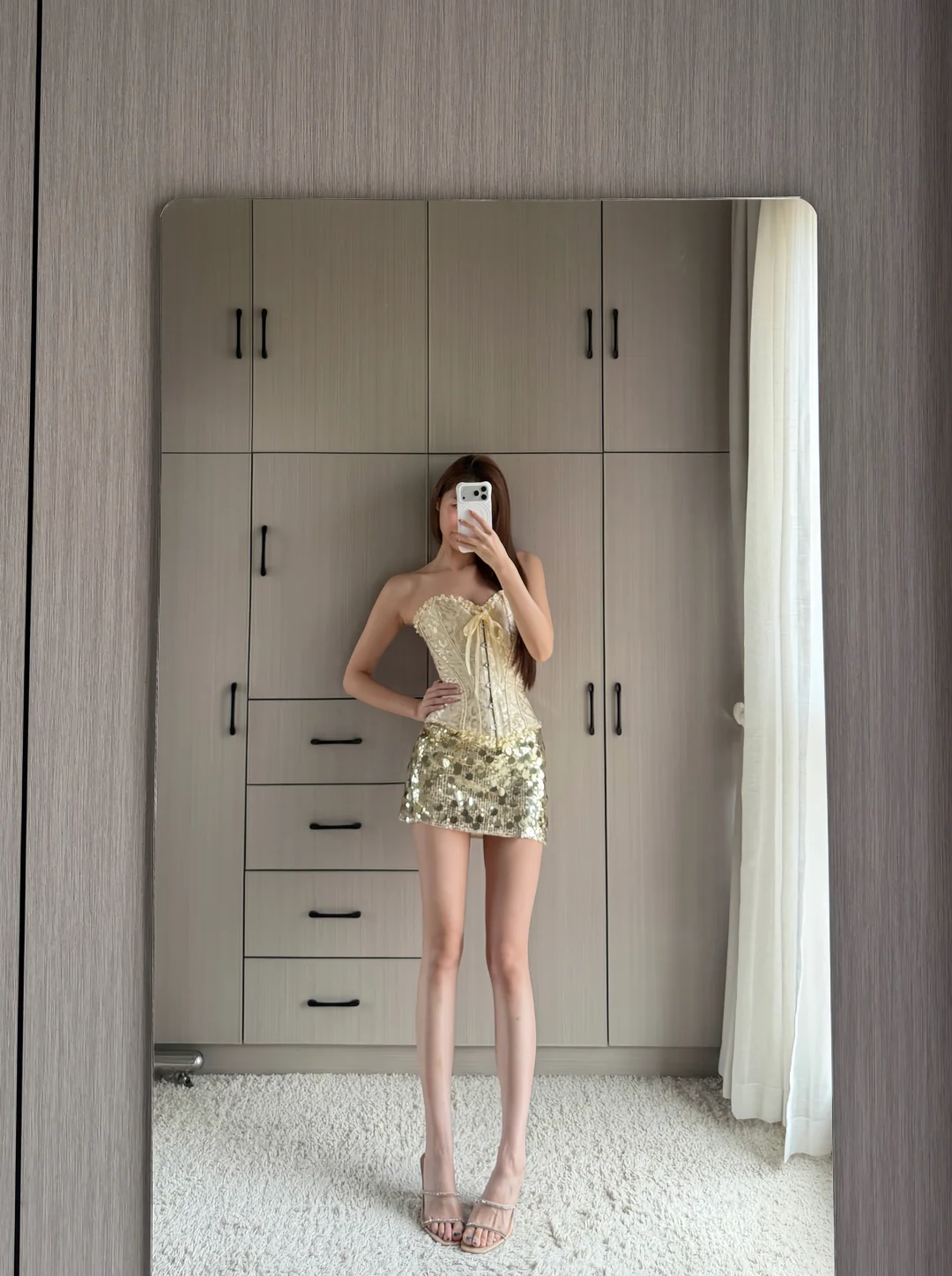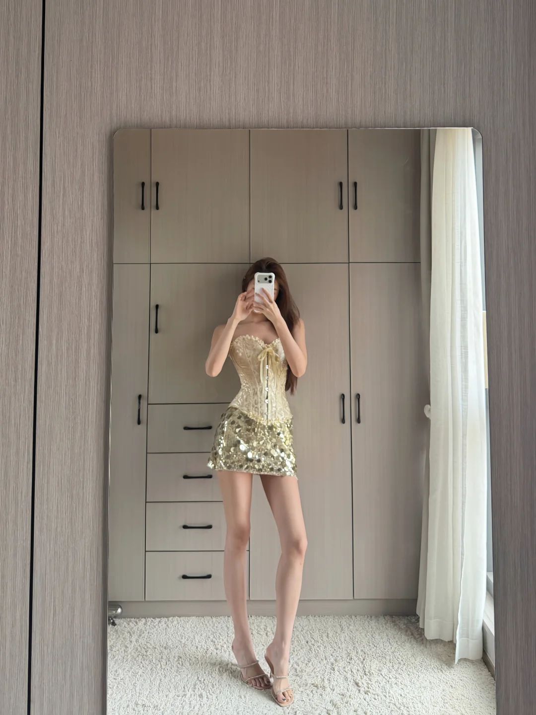 抹胸穿搭辣妹 没有艺术家不爱自己的缪斯 辣妹日记 fitcheck ootdinspo 香槟色 金光闪闪的风格 美的毫不费力 鎏金