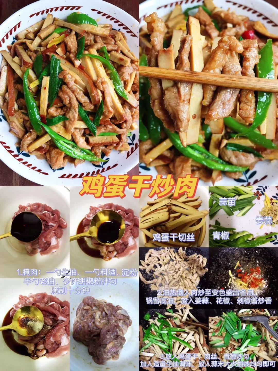 [赞R]大家好呀!给大家整理了超级下饭的家常菜合集,简单又好吃,学会一个月不重样哦! 13.蒜苗炒千叶豆腐 14.番茄土豆炖排骨 15.青椒肉丝 16.炒嫩胡豆 17.香辣鸭翅 18.荷兰豆炒肉 19.香干回锅肉 20.香辣龙虾尾 21.香干炒鸡蛋 22.鸡蛋干炒肉 23.紫菜虾滑汤 24.鸡腿烧土豆