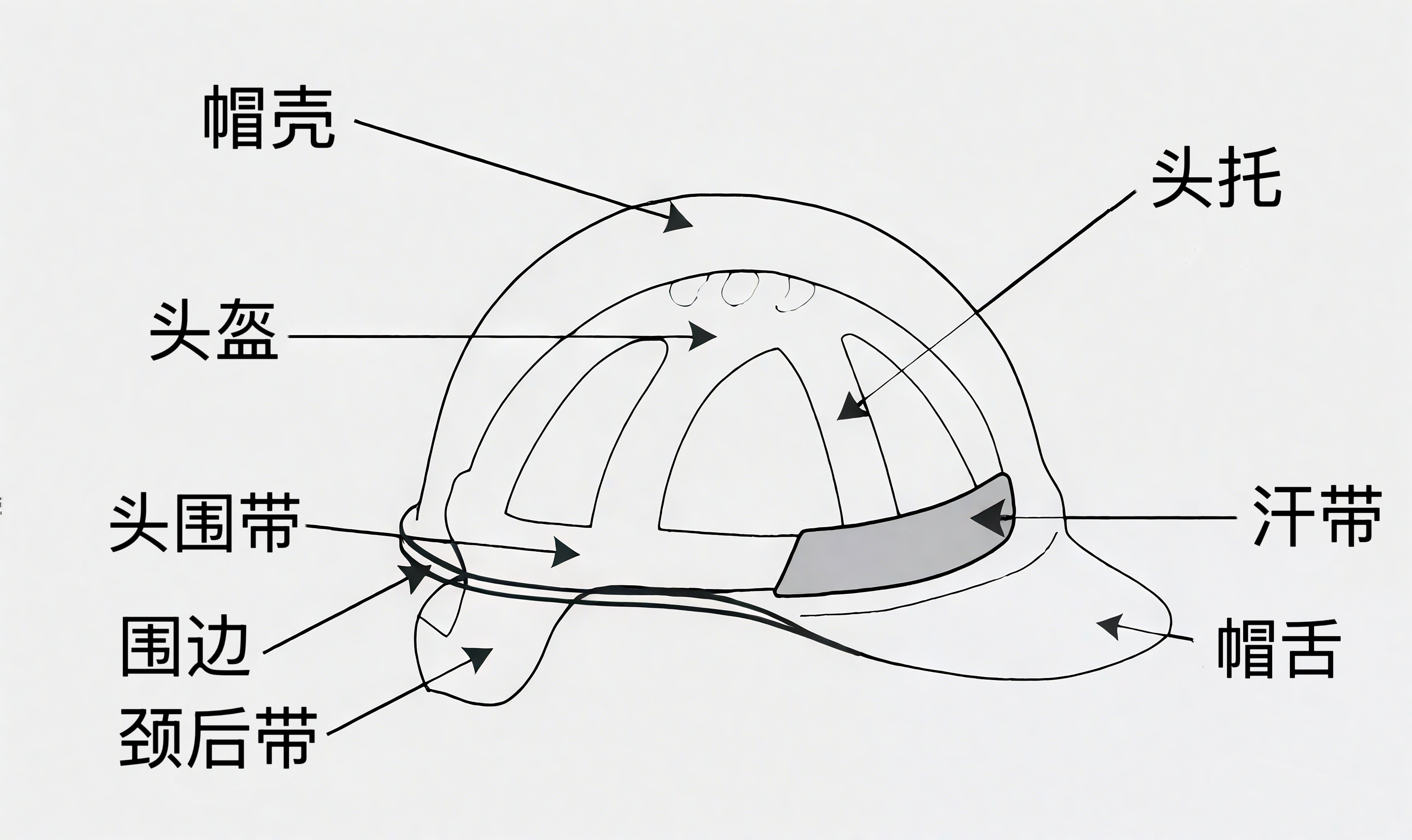 二、安全帽:守护头部的“生命盔甲”安全帽的作用是保护头部不受到坠物和特定因素引起的伤害,由帽壳、帽衬、下颌带及其附件组成,安全帽具有缓冲减震作用和分散应力作用,在受到外力的冲击后,最大程度的保护头部不受伤害。
