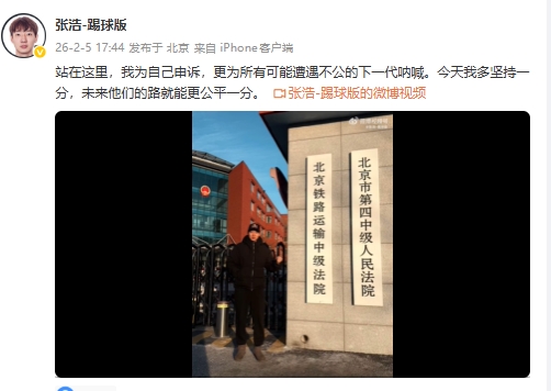张浩在社媒中表示:站在这里,我为自己申诉,更为所有可能遭遇不公的下一代呐喊。今天我多坚持一分,未来他们的路就能更公平一分。