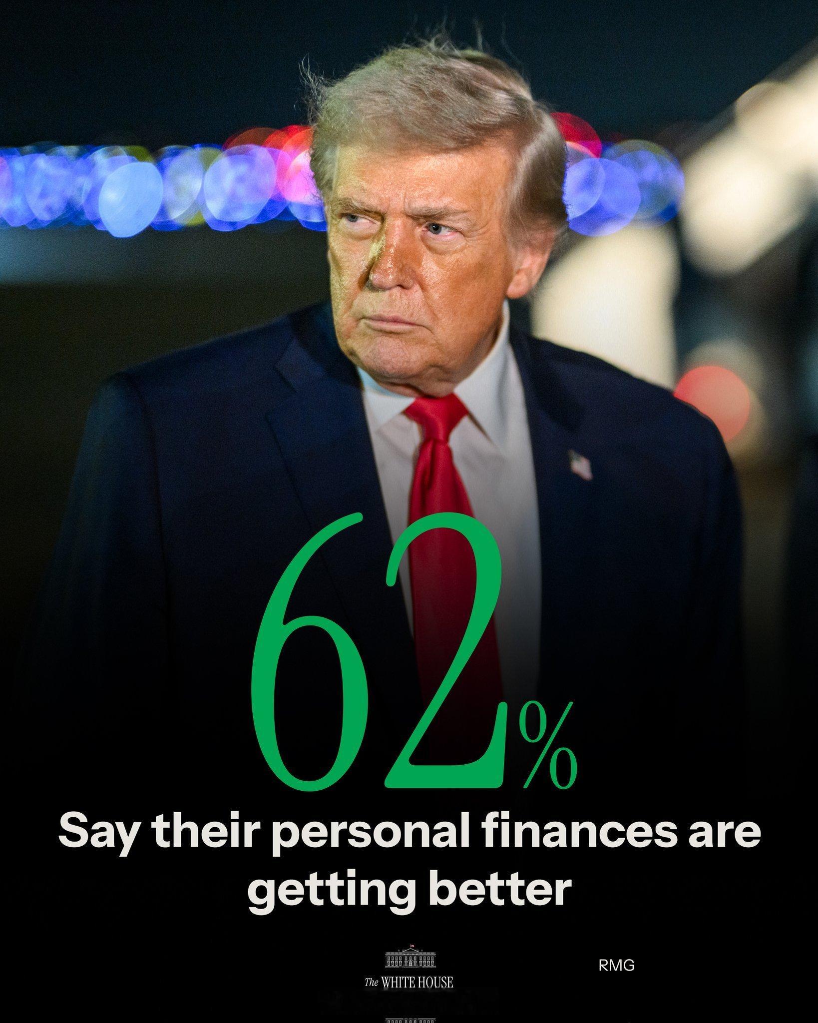 难得白宫删帖。做了个海报引用RMG最新民调,说有62%的美国人觉得经济情况转好。
