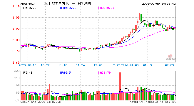 2月9日,军工ETF易方达(512560)开盘涨1.01%,报0.898元。军工ETF易方达(512560)重仓股方面,中国船舶开盘涨0.88%,光启技术涨1.46%,航天电子涨2.65%,中国卫星涨1.92%,航发动力涨1.96%,中航沈飞涨0.96%,中航光电涨0.87%,航天发展涨1.61%,菲利华涨2.00%,睿创微纳涨1.80%。