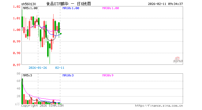2月11日,食品ETF鹏华(560130)开盘涨0.00%,报0.997元。食品ETF鹏华(560130)重仓股方面,安记食品开盘涨1.42%,一鸣食品涨0.05%。