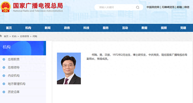 近日,国家广播电视总局官网“总局领导”栏目更新显示,何飚已任国家广播电视总局副局长、党组成员。