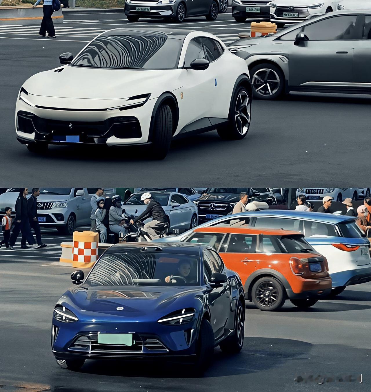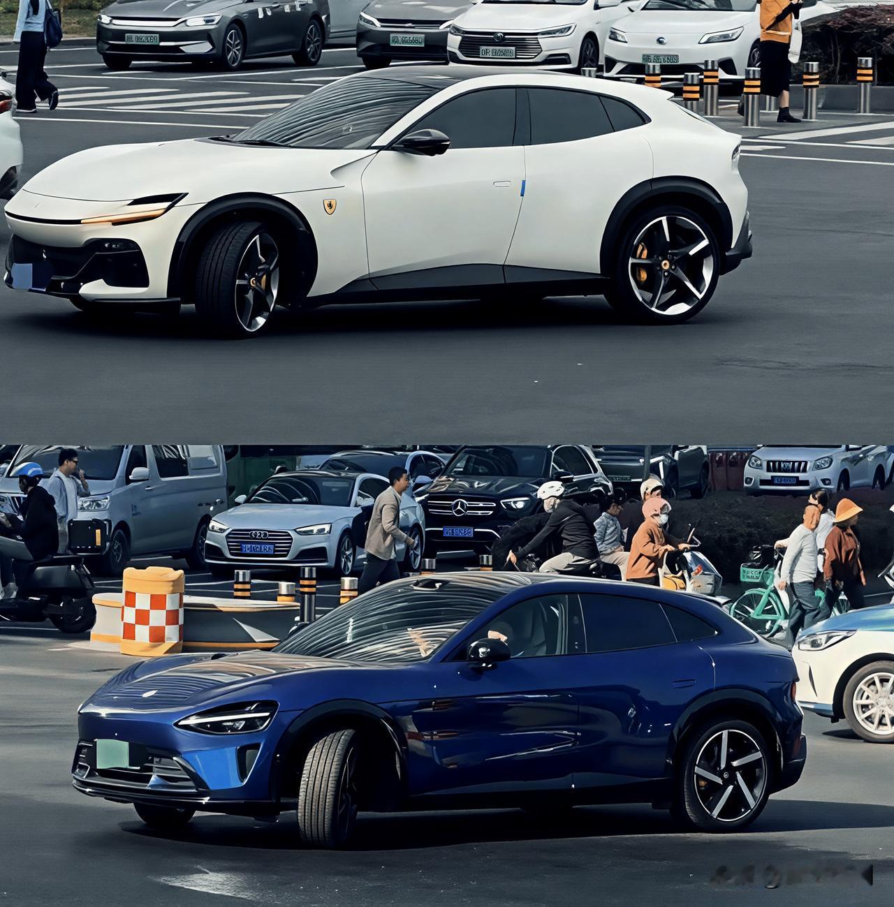 考眼力:哪辆才是小米YU7? 小米YU7和法拉利FUV,放在同一个机位和角度,可以看到流线型都是做到了极致,都非常好看! 如果是不看logo和车牌,我是选择看轮毂分辨,小米YU7的辨识度还是非常高。 小米YU7
