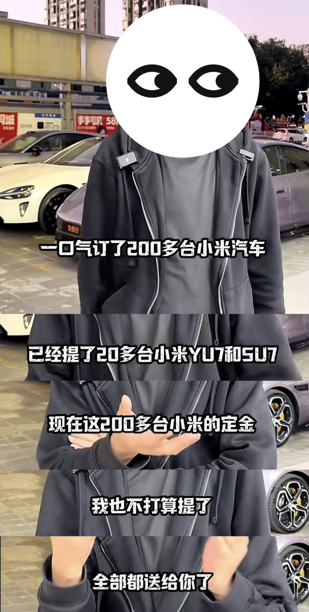 一个人,定了200多台小米汽车? 说实话,今天刷到这个二手车商,说自己一口气定了200多台小米汽车,我是不相信的。 根据这个二手车商的说法,定了200多台,现在提了20多台,而且包含了小米SU7和小米YU7。但是剩下的还有200多台,不打算提了,定金也放弃了。 为啥说,我很有疑问? 因为200多台,定金就要100多万,二手车商就是在赌,之前确实有不少车商靠着抢订单转手赚了钱。 但是这个赌注,未免过大? 但是从另外一方面讲,首先这个车商晒出来了订单明细,但是只是个表格。其次,小米今天公布了现车方案,其中就包括有一定库龄的全新车。看来,二手车商、黄牛以及当下的舆论环境,确实有一定的影响。 关于这件事,大家怎么看呢?