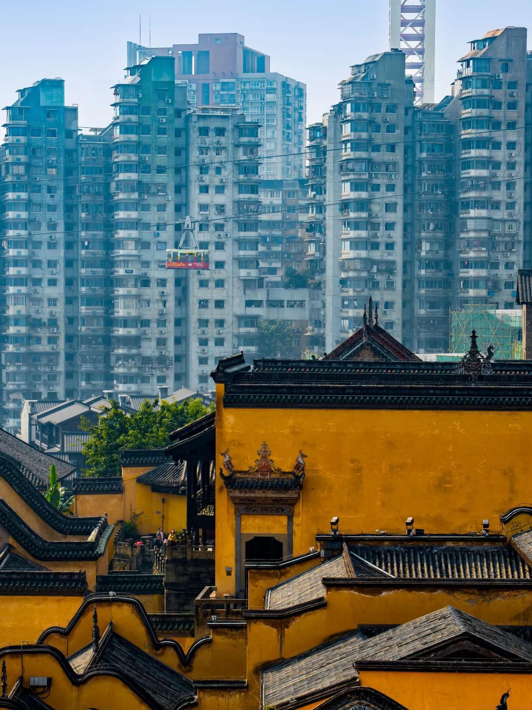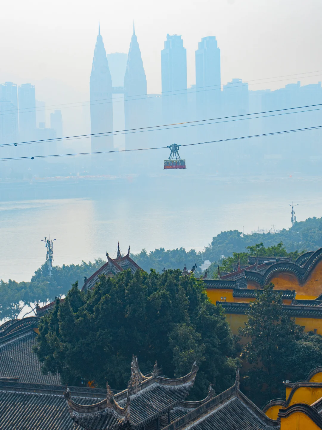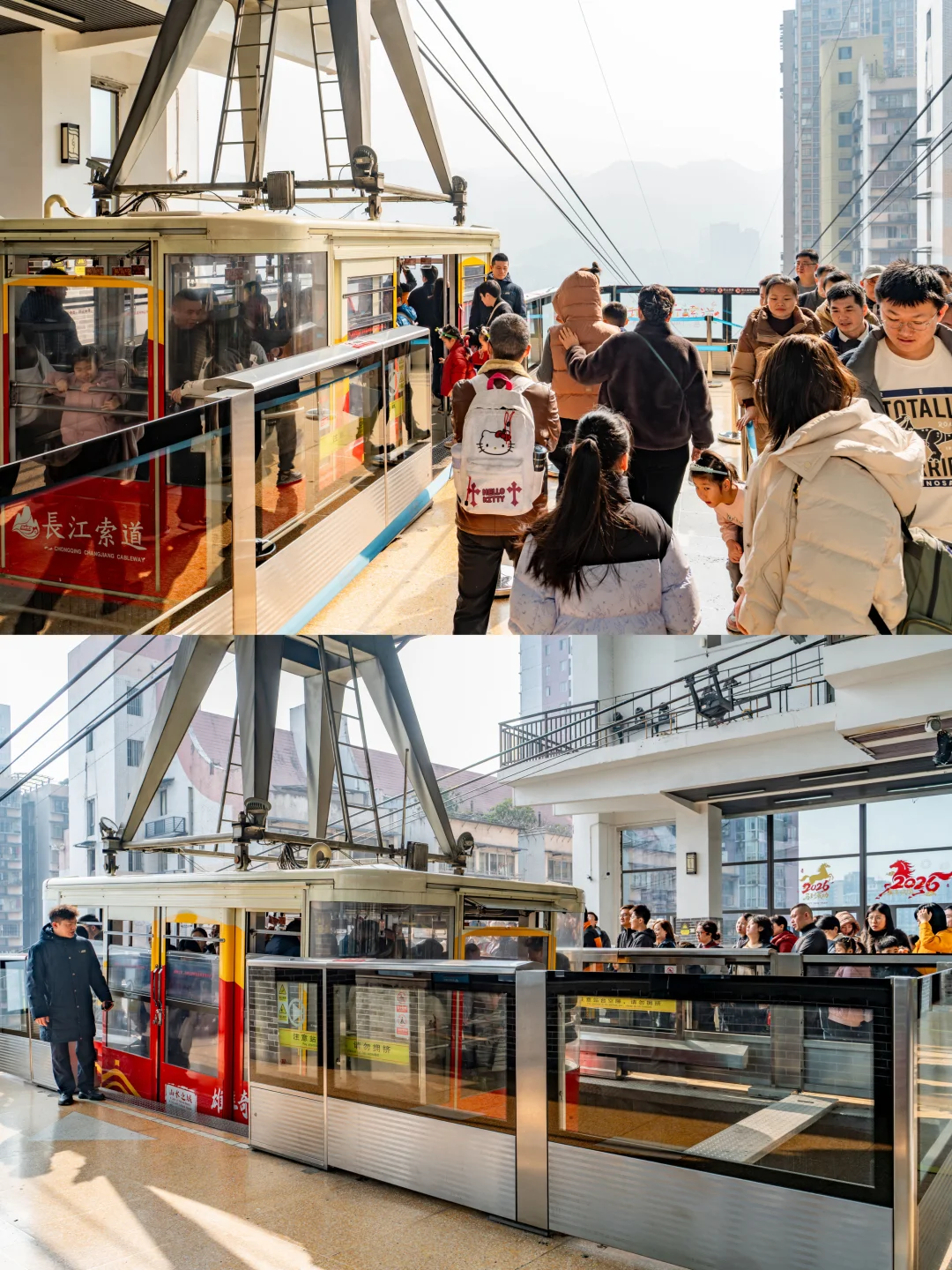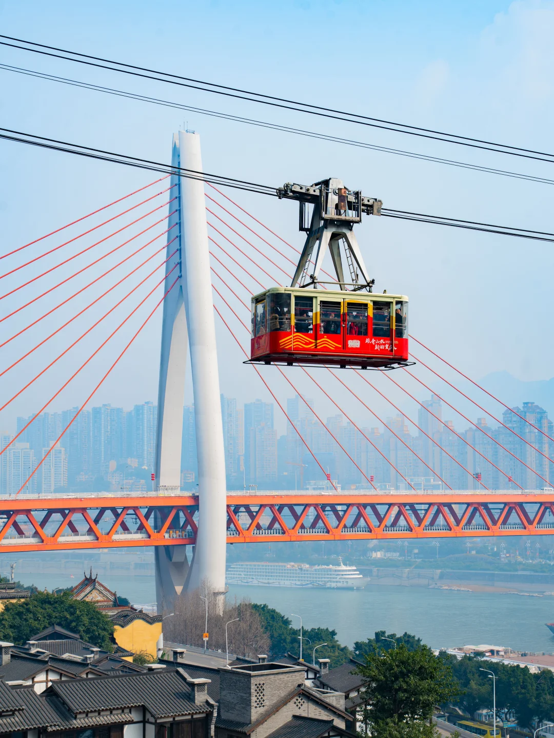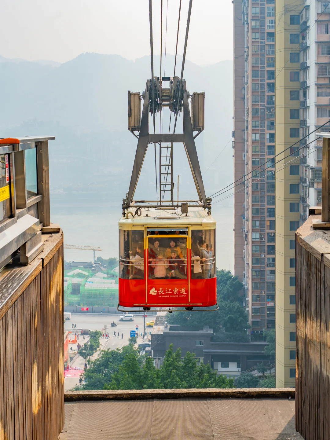 是重庆八九十年代连接渝中和南岸的交通工具,因横跨长江,被誉为 “空中公共汽车”现在成了打卡山城“立体交通”的标志性体验,轿厢里随手拍都是江景+城市建筑同框,真的很绝
