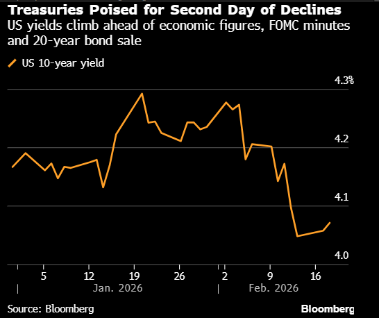 在可能提供美国利率线索的一系列重要经济数据和美联储会议纪要公布前,美国国债迈向第二日下跌。
