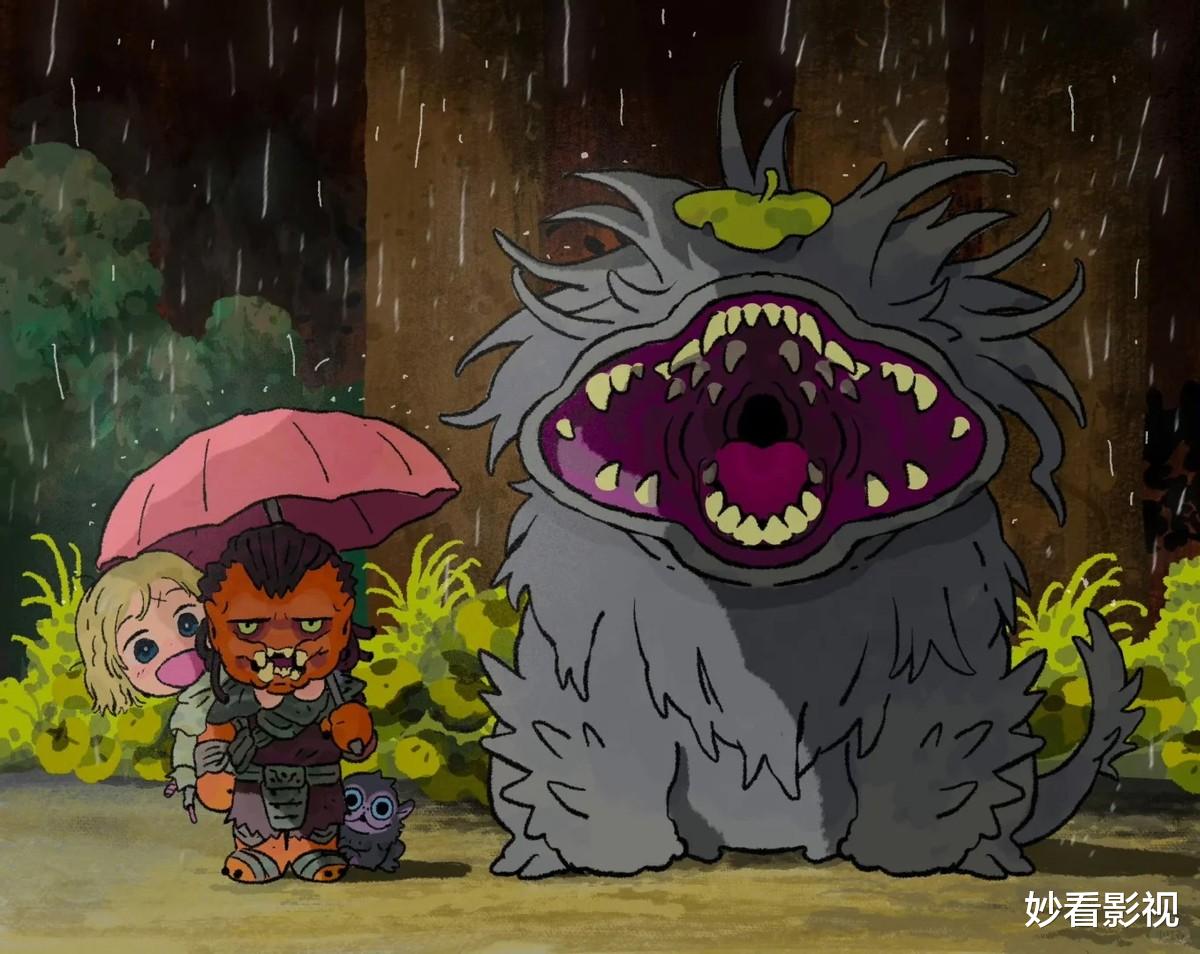 而随着旅程推进,他们还遇上了一只形似猿类的小生物巴德,这个看似搞笑的吉祥物实则是婴儿时期的卡利斯克。其实希雅说岩野牛是卡利斯克的食物,巴德也在追捕岩野牛时,就已经埋下伏笔。
