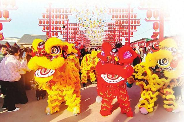 刘家堡新春民俗活动中,舞狮表演热闹欢腾。本报记者丁园摄