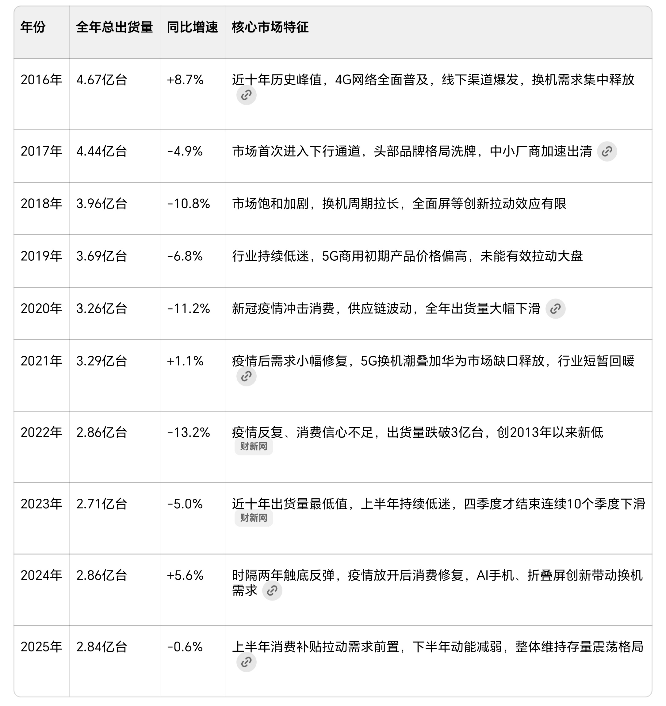 近十年来国内手机厂商出货量以及总出货量变化,从高速增长到存量博弈
