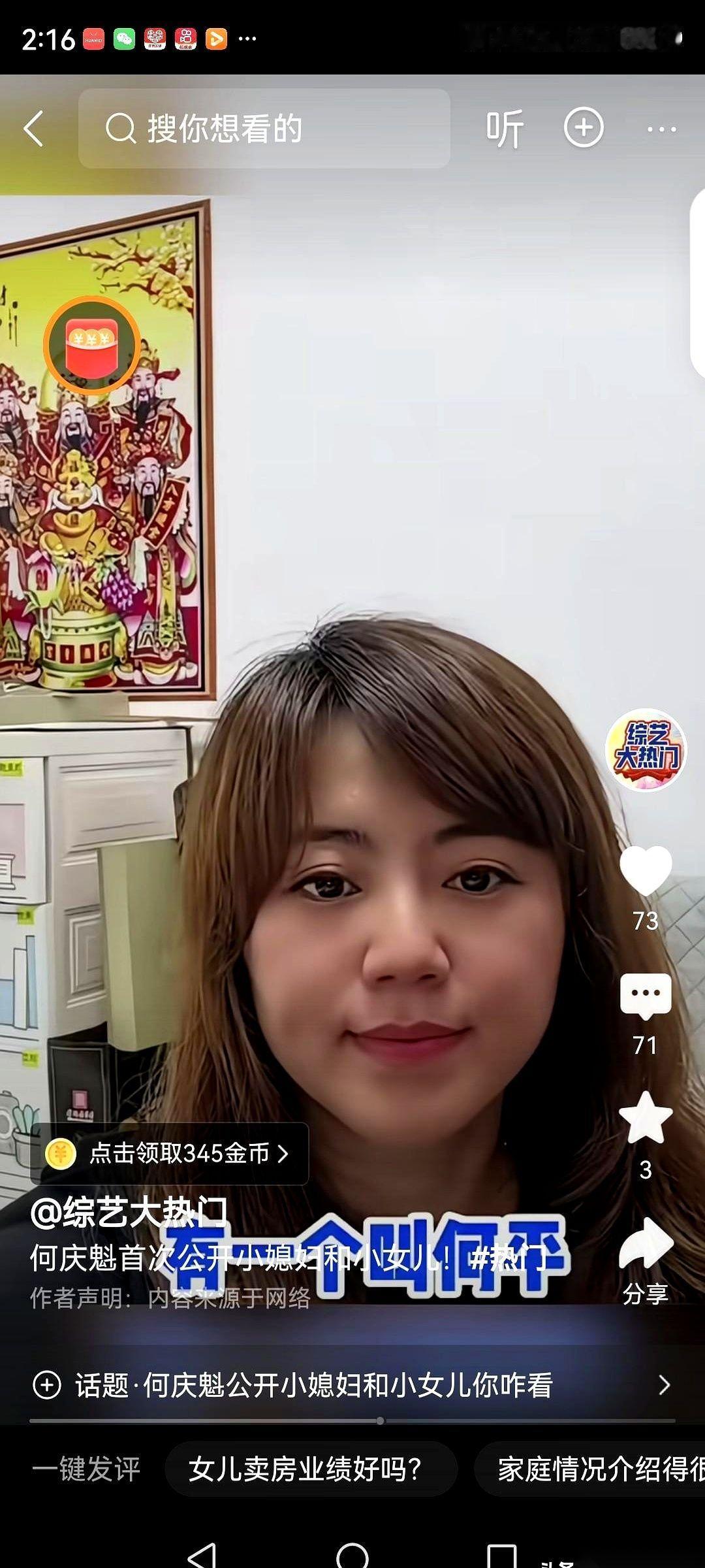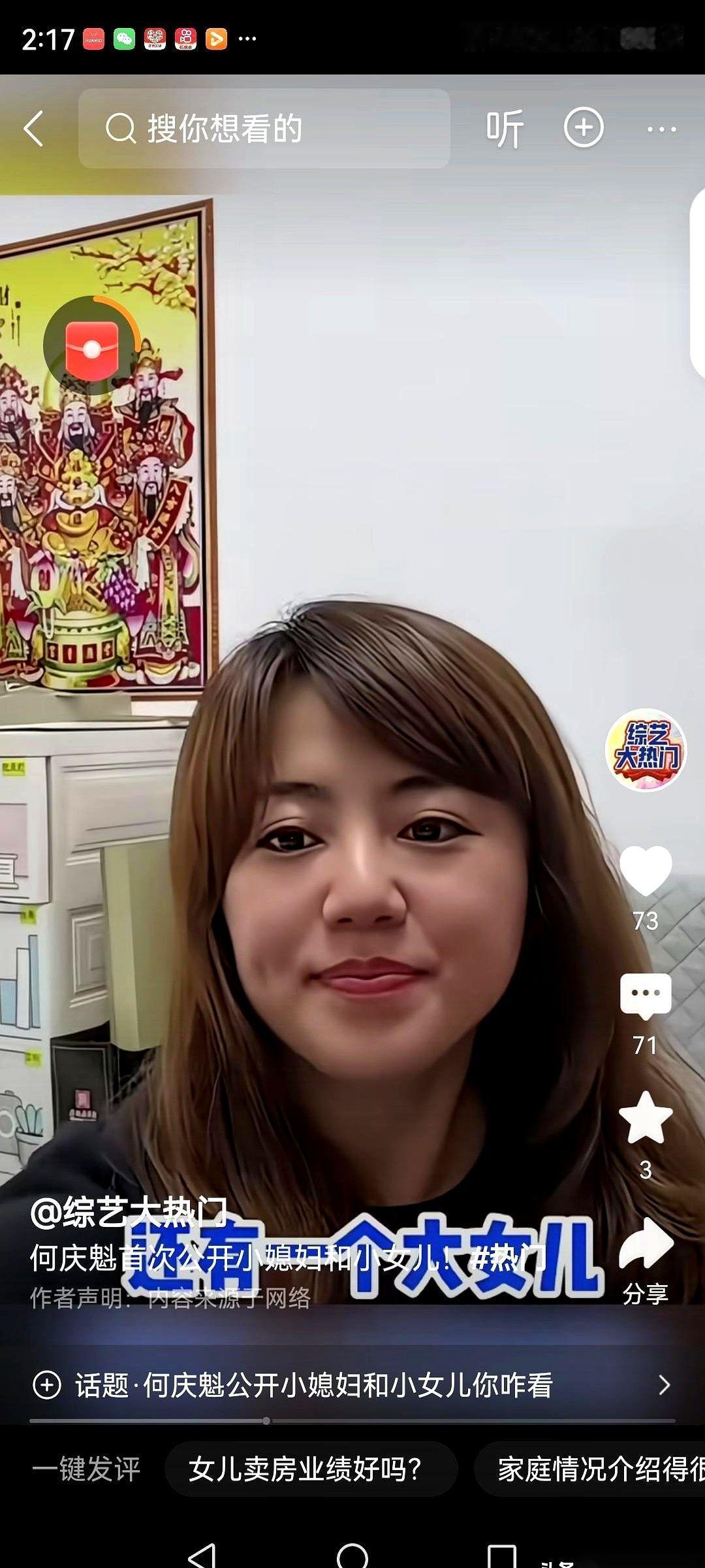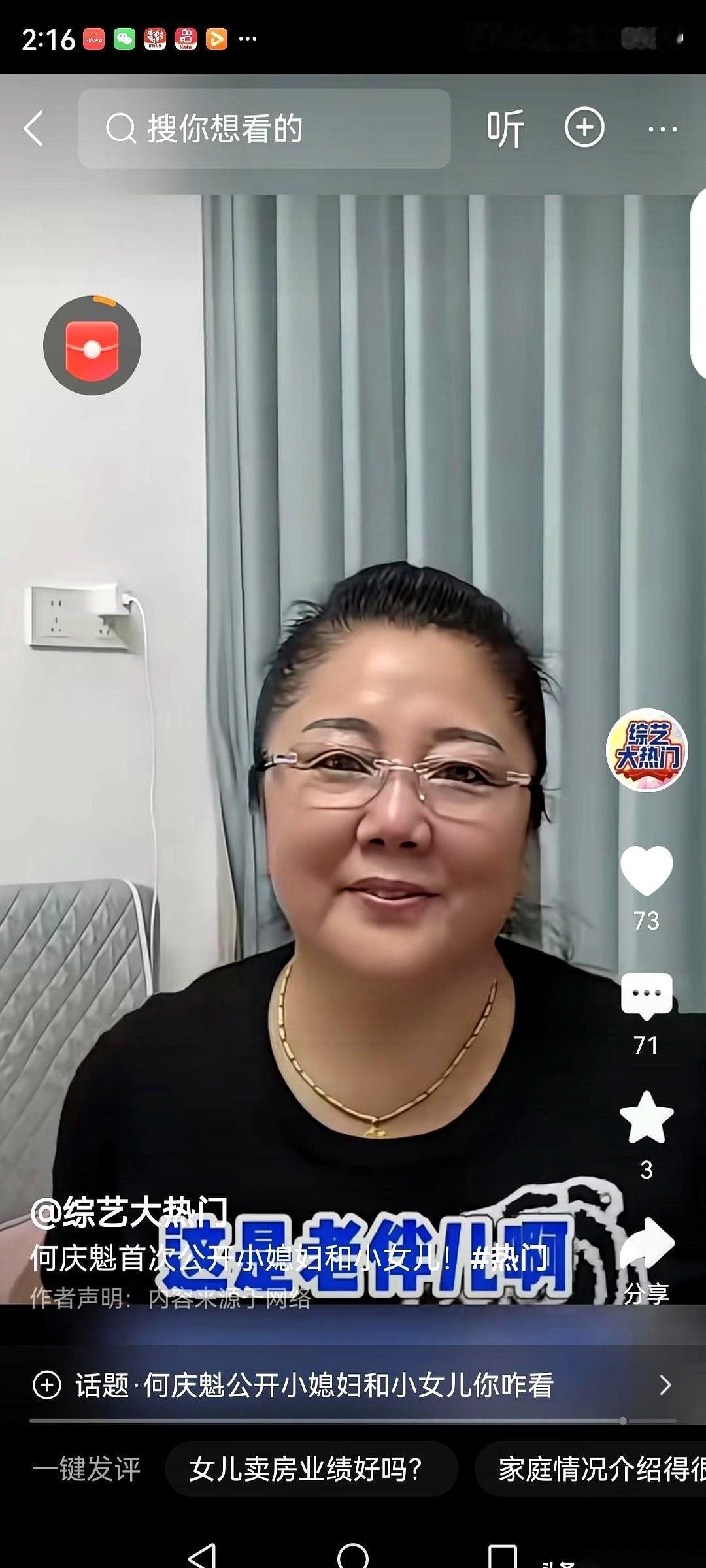 人家新老伴带过来的闺女,在深圳自己开公司。 自己亲生的虎儿子呢,在松原,没事就伸手要钱。 绝了。 何庆魁老爷子也是实在,直播里啥都往外说,听着都替他脸上火辣辣的。 但你再一琢磨,这事儿一点不奇怪。 人家那娘俩,在深圳卖了20年的楼。什么概念?那是真刀真枪在一线城市拼出来的家底和眼界,那种环境里泡大的孩子,能差到哪去? 那不叫别的,那叫原生家庭的顶级配置——不是给了多少钱,而是给了你闯世界的视野和底气。 反观自己这边呢。 一个女儿在长春,一个儿子在松原。 生活嘛,估计也就是个安稳。 但人有时候就是这样,安稳久了,翅膀就容易变软,总觉得背后那棵大树永远不会倒。 你说他直播里这么说,是炫耀新老伴家底厚,还是在敲打自己孩子? 我猜,都有。 更多的是一种藏不住的失落和无力感吧。 血缘这玩意儿,有时候是情分,有时候……也真就是个“债”。