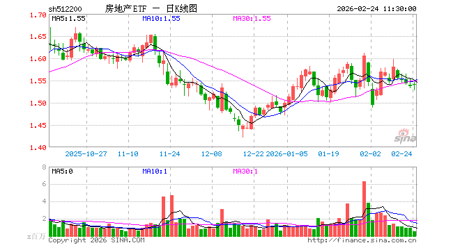 2月24日,截止午间收盘,房地产ETF(512200)涨0.39%,报1.542元,成交额8663.61万元。房地产ETF(512200)重仓股方面,保利发展截止午盘涨0.59%,张江高科涨0.57%,万科A跌0.80%,招商蛇口跌1.65%,海南机场跌3.57%,衢州发展涨4.67%,万通发展涨2.48%,新城控股涨0.60%,滨江集团涨0.52%,先导基电跌0.32%。