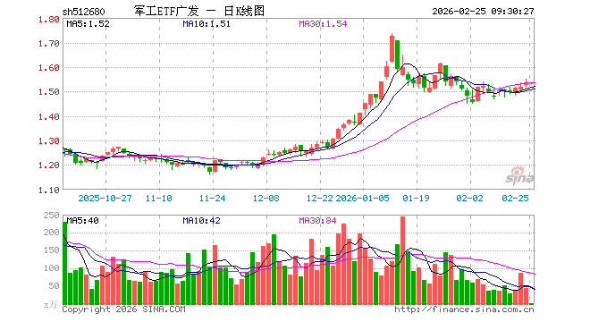 2月25日,军工ETF广发(512680)开盘涨0.00%,报1.536元。军工ETF广发(512680)重仓股方面,中国船舶开盘跌0.48%,光启技术涨0.00%,航天电子涨0.79%,中国卫星涨0.10%,航发动力涨0.39%,中航沈飞涨0.21%,中航光电涨0.29%,航天发展涨0.65%,菲利华跌0.83%,睿创微纳跌0.19%。