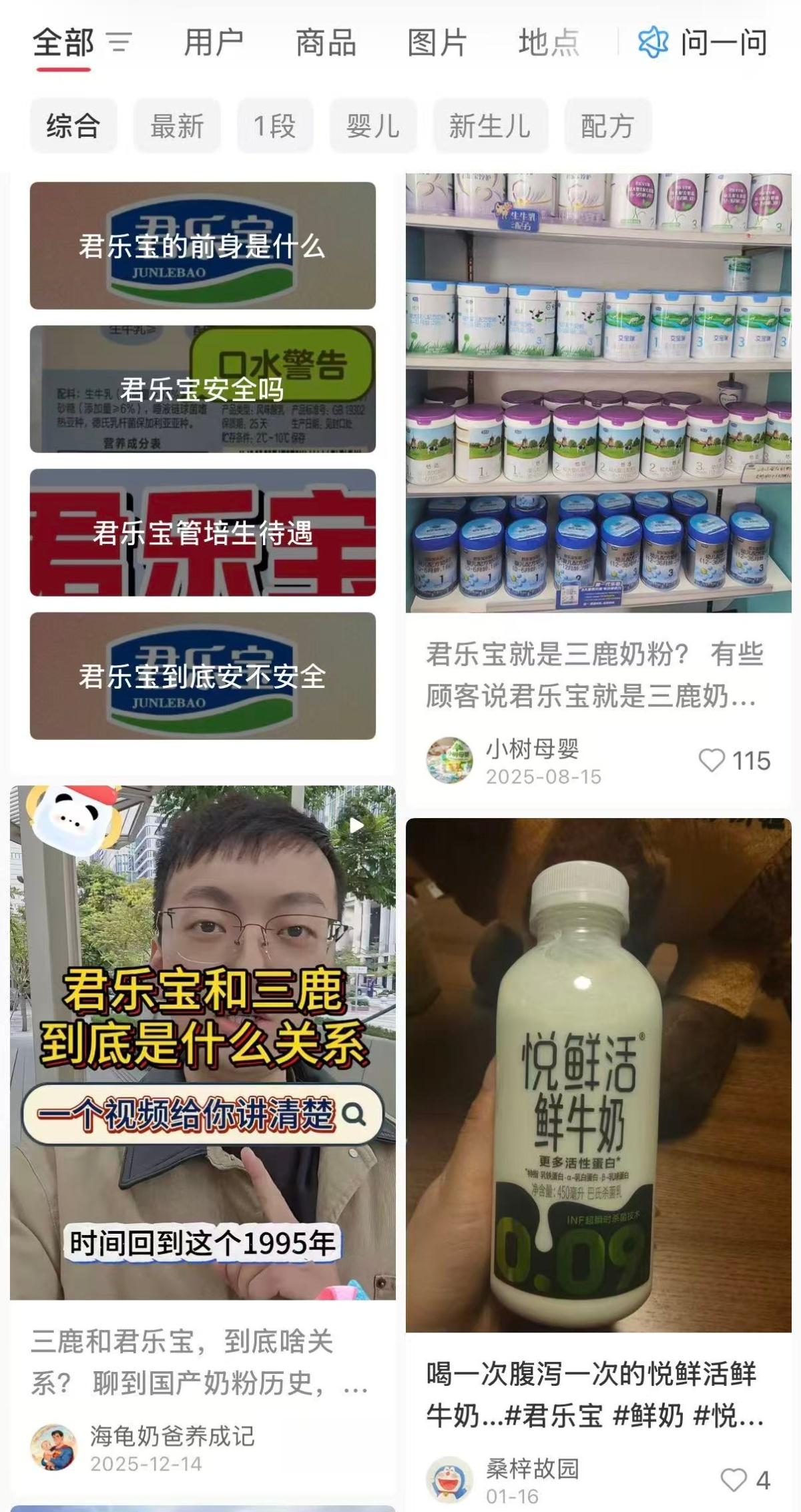 在社交媒体上,仍有消费者将君乐宝与三鹿绑定
