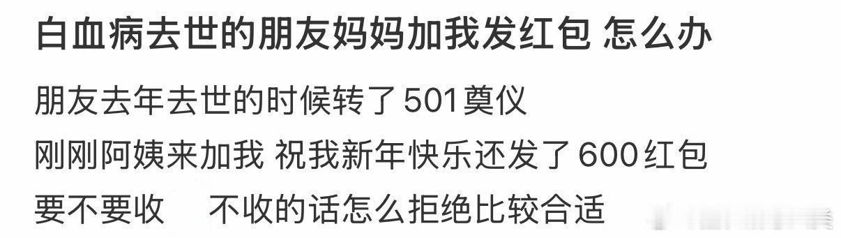 亲爱的,我收到了白血病去世朋友妈妈的红包。