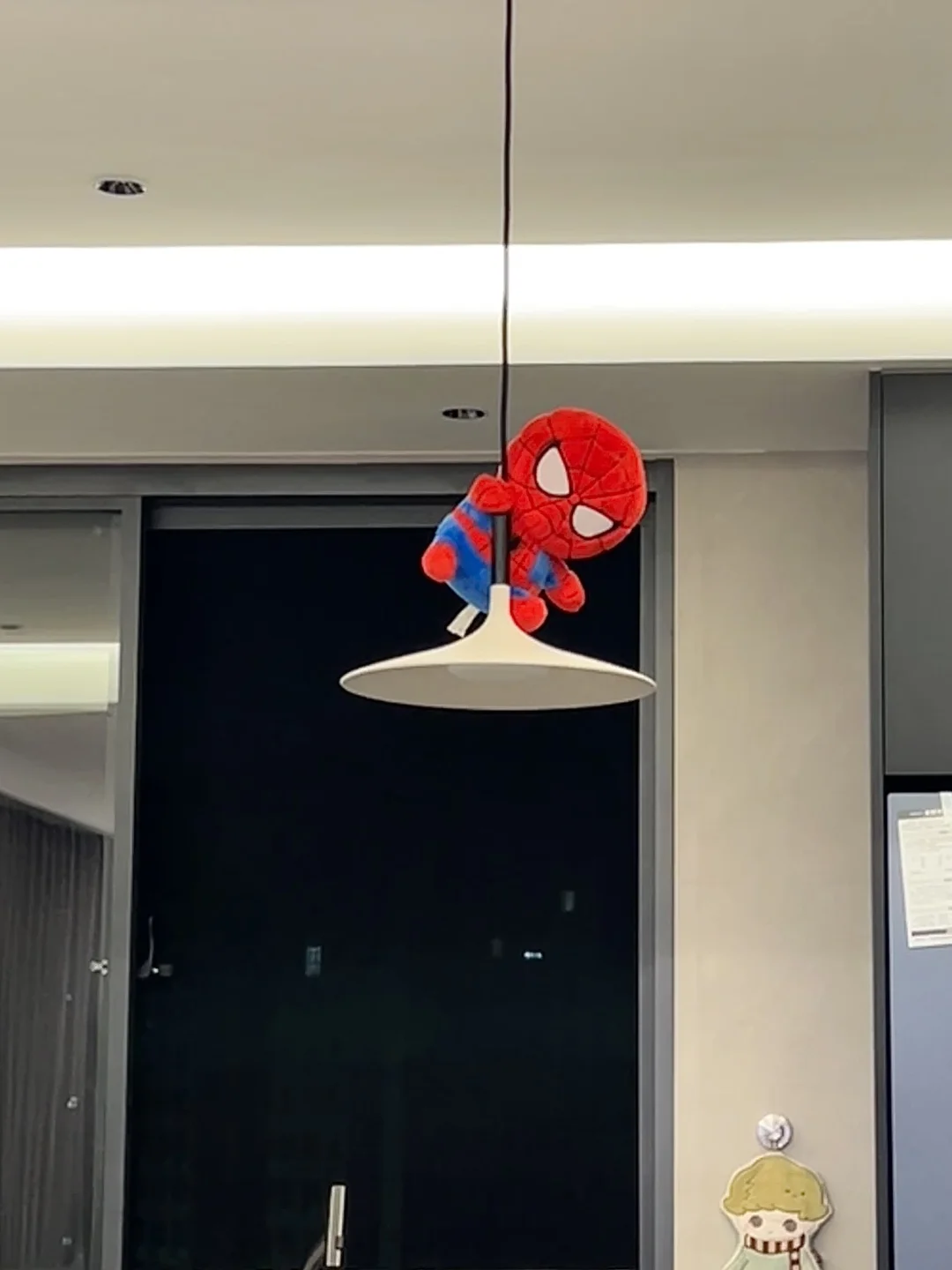 把以前的旧玩具带来新家了 没想到小蜘蛛侠太适合在吊灯上啦hhh 今天初八开工又准备陆陆续续要买好多东西 想布置好新家的每一个角落[哇R]