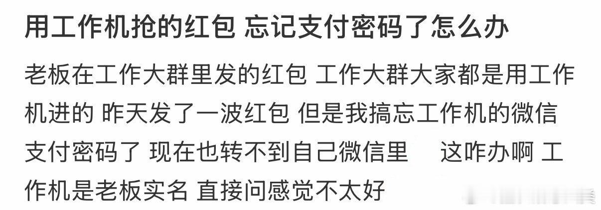 工作机抢的红包,忘记支付密码怎么办?- 请尽快联系客服解决。