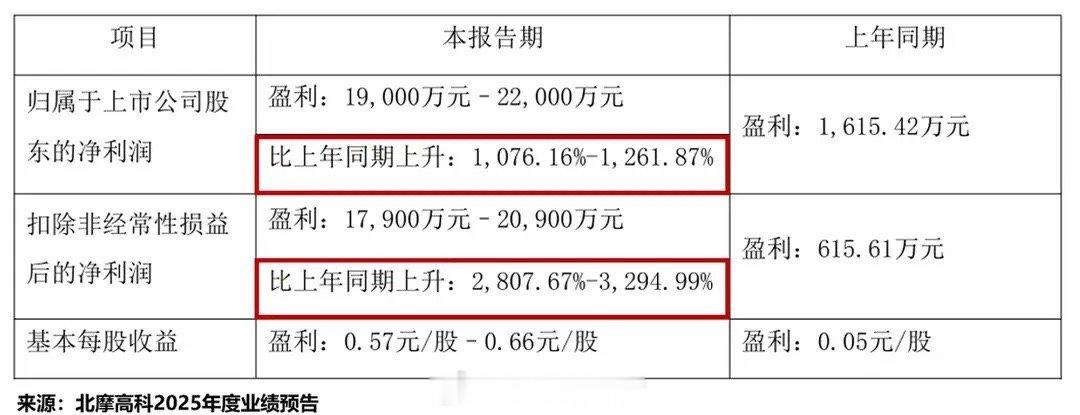 北摩高科显然有这个底气。1月30日,公司2025年度业绩预告一出炉就炸了锅:预计全年归母净利润1.9亿至2.2亿元,同比激增1076.16%至1261.87%;扣非后净利润增幅更飙至32.95倍。