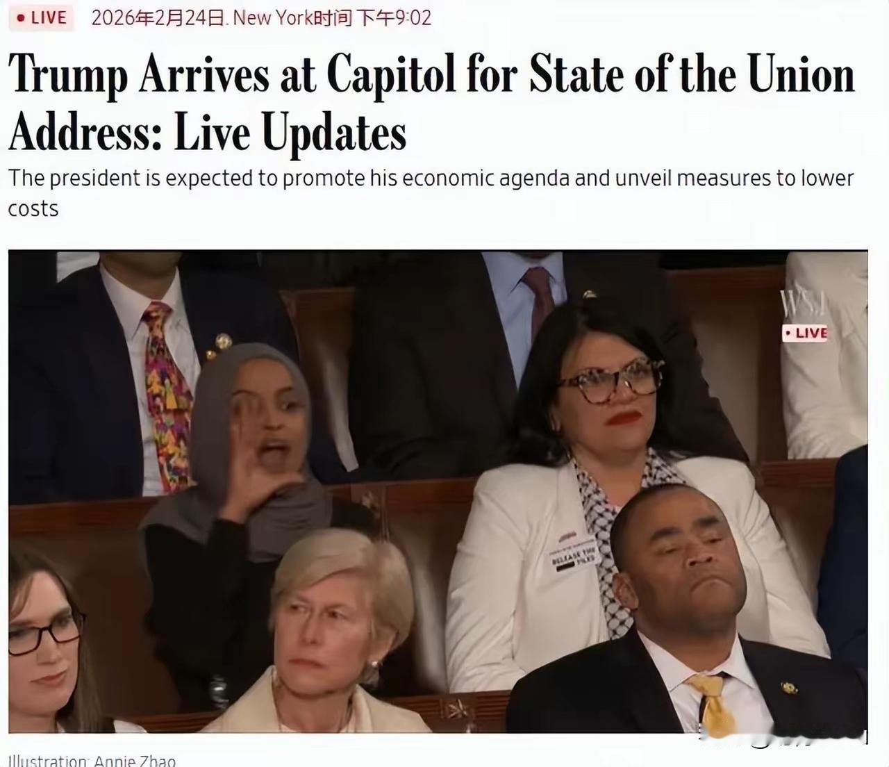 特朗普2月24日晚发表第二任期首场国情咨文,称美国开启“黄金时代”,通胀急剧回落、收入攀升,边境最安全;现场遭民主党议员喝倒彩(奥马尔等喊话),格林因举“黑人不是猿”横幅被带离: 还说从委内瑞拉接收超8000万桶石油。