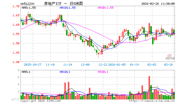 2月26日,截止午间收盘,房地产ETF(512200)跌1.84%,报1.549元,成交额3.11亿元。房地产ETF(512200)重仓股方面,保利发展截止午盘跌2.59%,张江高科涨0.42%,万科A跌2.00%,招商蛇口跌3.64%,海南机场跌2.51%,衢州发展跌2.65%,万通发展涨3.96%,新城控股跌2.66%,滨江集团跌2.91%,先导基电跌0.72%。