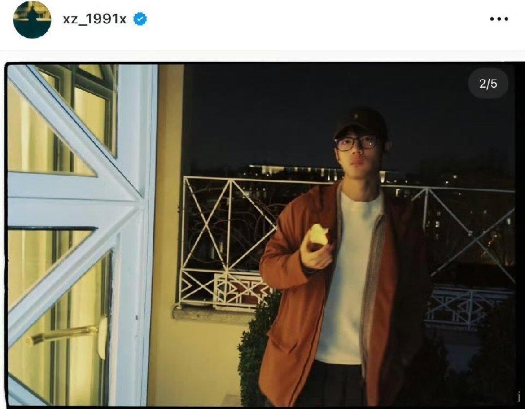 肖战ins年更博主终于给海外粉丝喂粮了!落地米兰就看上夜景啃上苹果还收到了品牌的