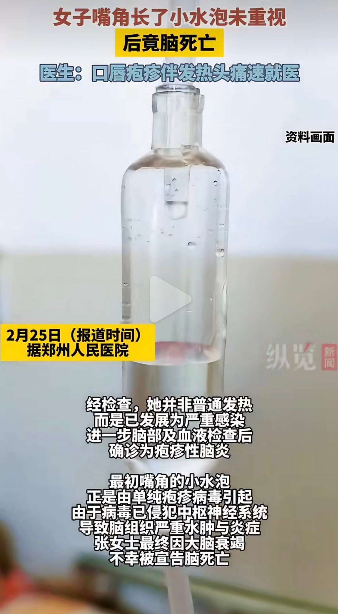 女子嘴角起泡未重视竟脑死亡 嘴角起泡真不是小事!我以前也总当成上火瞎处理,看了陕西大姐的事真是后怕。提醒:口唇疱疹伴发热头痛须立即就医
