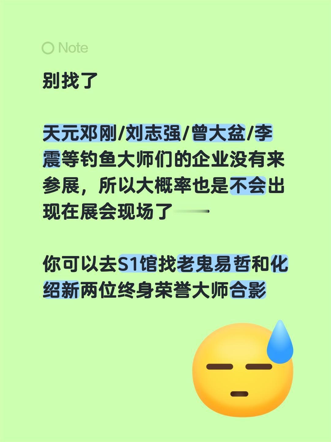 2026天津渔具展现场会有哪些钓鱼网红?给大家汇总了2026年天津渔具展会上,各品牌会有哪些钓鱼大师/钓鱼网红们出现在品牌展位上,方便钓友们去薅羊毛。 列出来的这么多钓鱼网红中,你最期待的,是哪位呢? 别找了,天元邓刚/刘志强/曾大盆/李震等钓鱼大师们的企业没有来参展,所以大概率也是不会出现在展会现场了……你可以去S1馆找老鬼易哲和化绍新两位终身荣誉大师合影钓鱼 钓鱼档案馆 天元邓刚 刘志强钓鱼