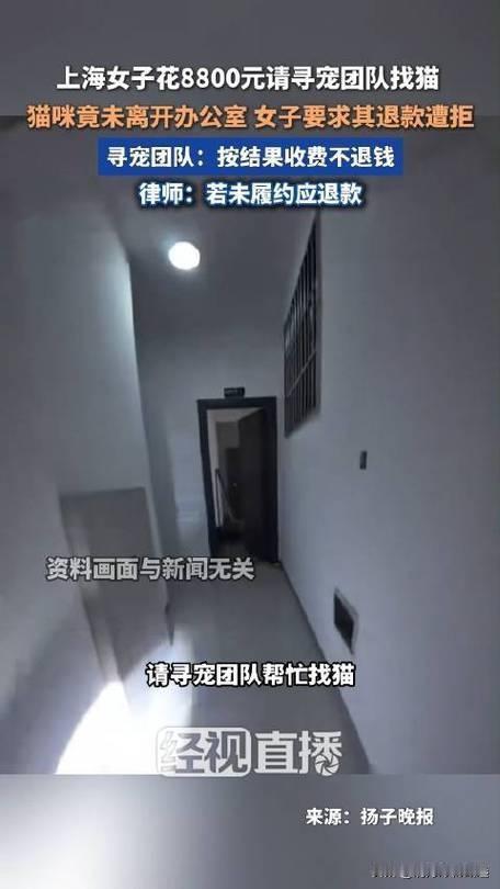 上海陈女士误以为心爱的猫咪走失,焦急万分之下花费8800元,雇佣了一支专业寻宠团队帮忙寻找。 可谁曾想,寻宠团队费劲心思“寻找”了数日,最终却发现猫咪一直安然待在办公室里。 面对这一荒唐结果,陈女士要求退还尚未支付的尾款,却遭到了对方的坚决拒绝。 事情的来龙去脉很简单:陈女士的猫咪没有离开办公场所,但寻宠团队却以“专业服务”为名,收取高额费用,甚至在未完成有效寻找的情况下,拒绝退款。 陈女士认为,这种天价寻宠服务不仅名不副实,更是对消费者的一种变相敛财。愤怒之下,她选择报警,并委托律师准备诉讼,力求讨回公道。 表面上,这只是一起因误会引发的寻宠纠纷,但背后却反映出当前市场上一些“高价服务”的乱象。 消费者往往在情绪驱动下,急于寻回心爱的宠物,成为某些机构谋取暴利的“软目标”。高额收费并不代表服务质量,盲目相信所谓“专业团队”,结果却是钱打水漂,情绪受伤害。 更令人深思的是,这种现象在生活中并不罕见。无论是寻宠、家政还是教育辅导,类似的“高价无效服务”层出不穷,暴露出市场监管的漏洞和消费者维权的难题。 陈女士的遭遇,恰恰提醒我们:理性消费、保持警惕,才是避免被套路的第一步。 不少网友看到此事后纷纷留言:“这钱花得太不值了!”“专业不专业,猫都没找出去就收费,明显坑人。”“遇到这种事,果断报警是唯一正确选择!” 这种情绪的爆发,既是对不良服务的愤怒,也是对消费者权益保护呼声的体现。 陈女士的维权之路还在继续,但这件事给我们所有人敲响了警钟:面对高价服务,别光看宣传和承诺,务必多方核实,理性判断,才能避免成为下一个“冤大头”。 同时,也期待相关部门加强监管,严惩欺诈行为,让市场回归诚信与公平。 你怎么看这次“寻猫”事件?你是否也遇到过类似“高价无效服务”的坑?欢迎留言分享你的故事,一起为消费者权益发声!