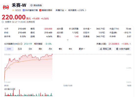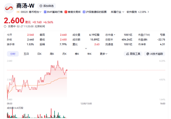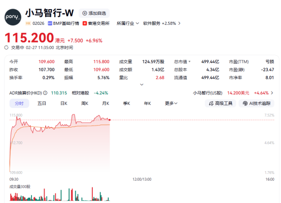 上证报中国证券网讯(李子健记者周亮)2月27日,小马智行-W、商汤-W、禾赛-W等个股走强,截至11时35分,上述公司分别上涨6.96%、6.56%及4.56%。