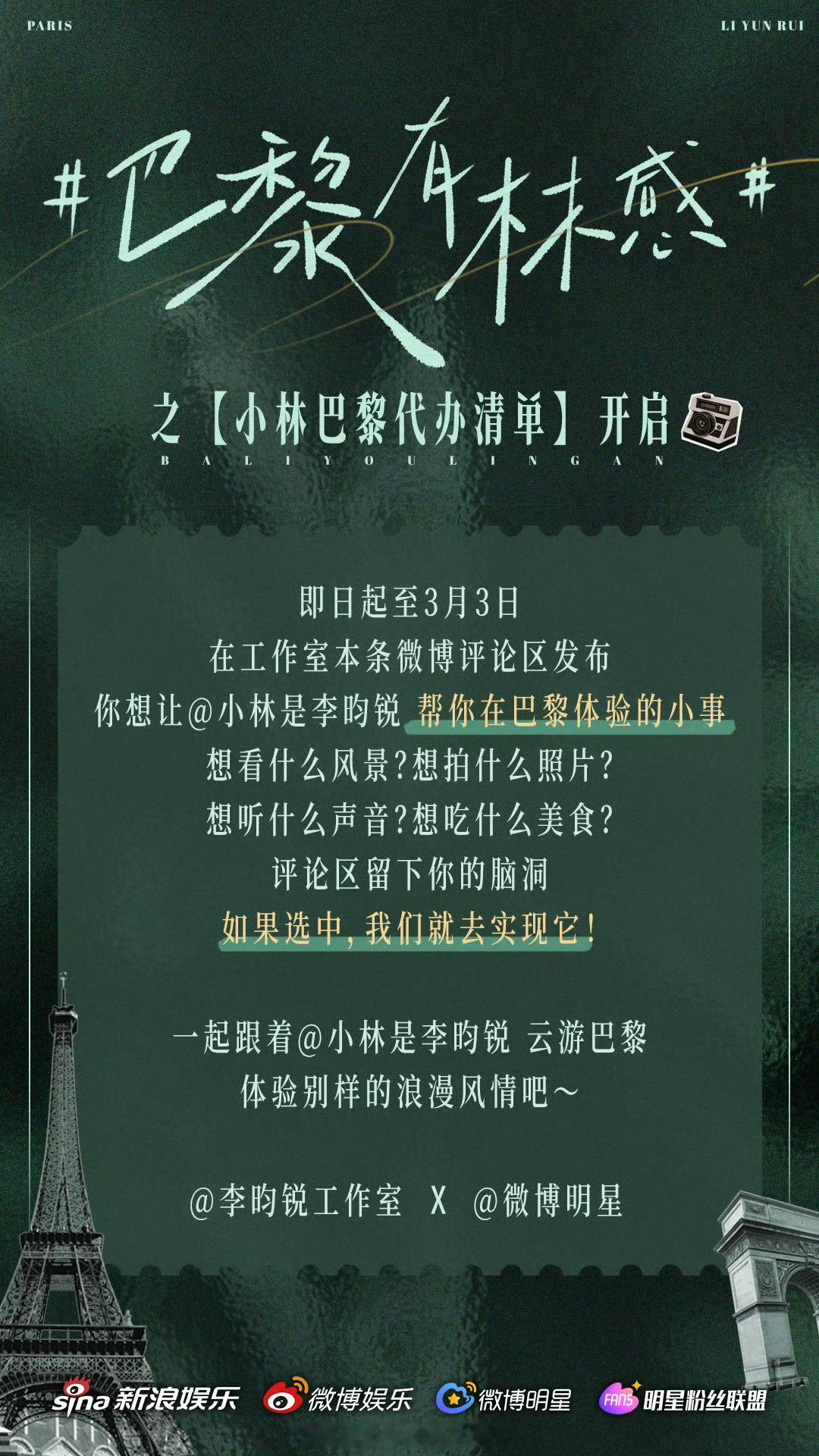 李昀锐今日自拍很帅很满意发现他营业都很用心,巴黎时装周还有致小森林的代办清单燥候