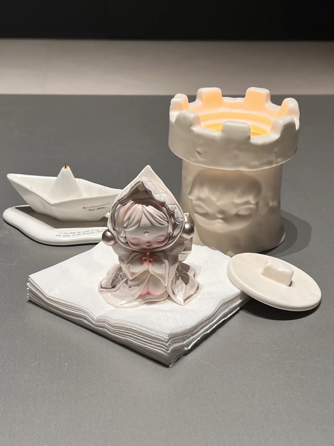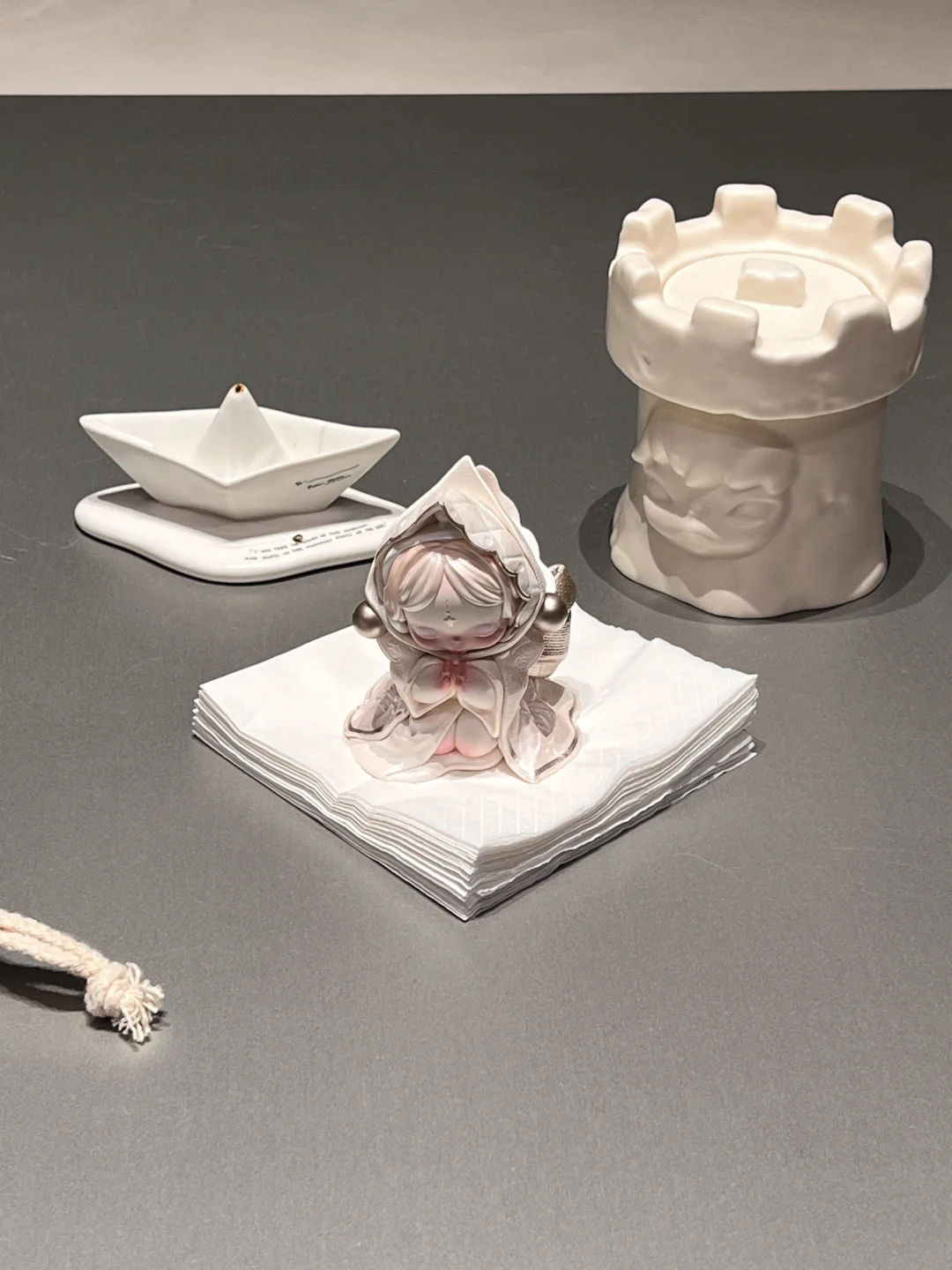 sp的餐桌系列本来没打算抽的 门店看见这个餐巾的默守果断要拿下!!! 放在茶几上守护我的餐巾纸 点上线香好神圣啊🤍
