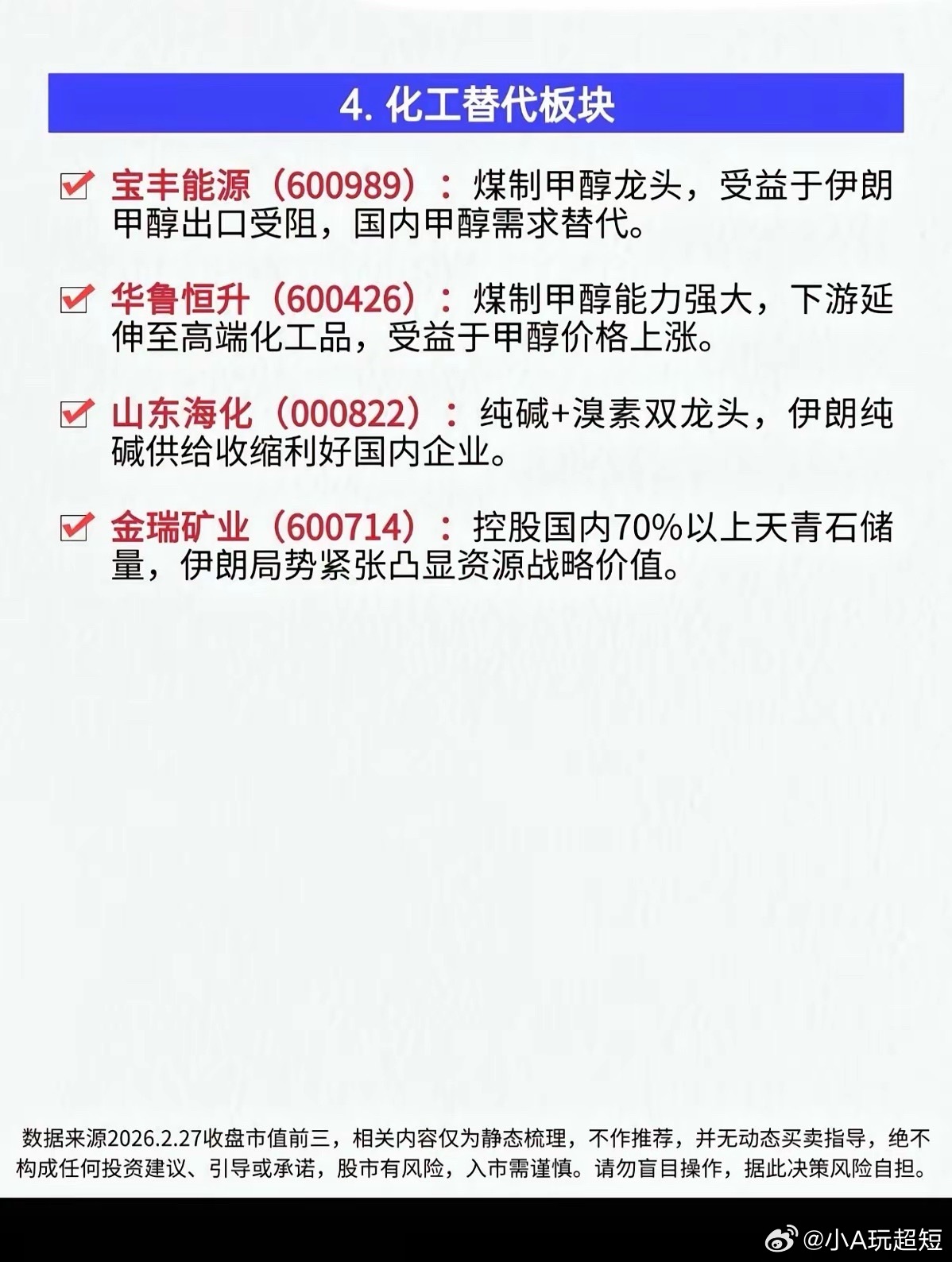 突发!伊朗战争概念!1.油气开采2.油气设备3.油运,港口4.煤炭,煤化工5.战机,无人机6.军工电子7.贵金属8.特定化工,甲醇相关核心龙头受益股: