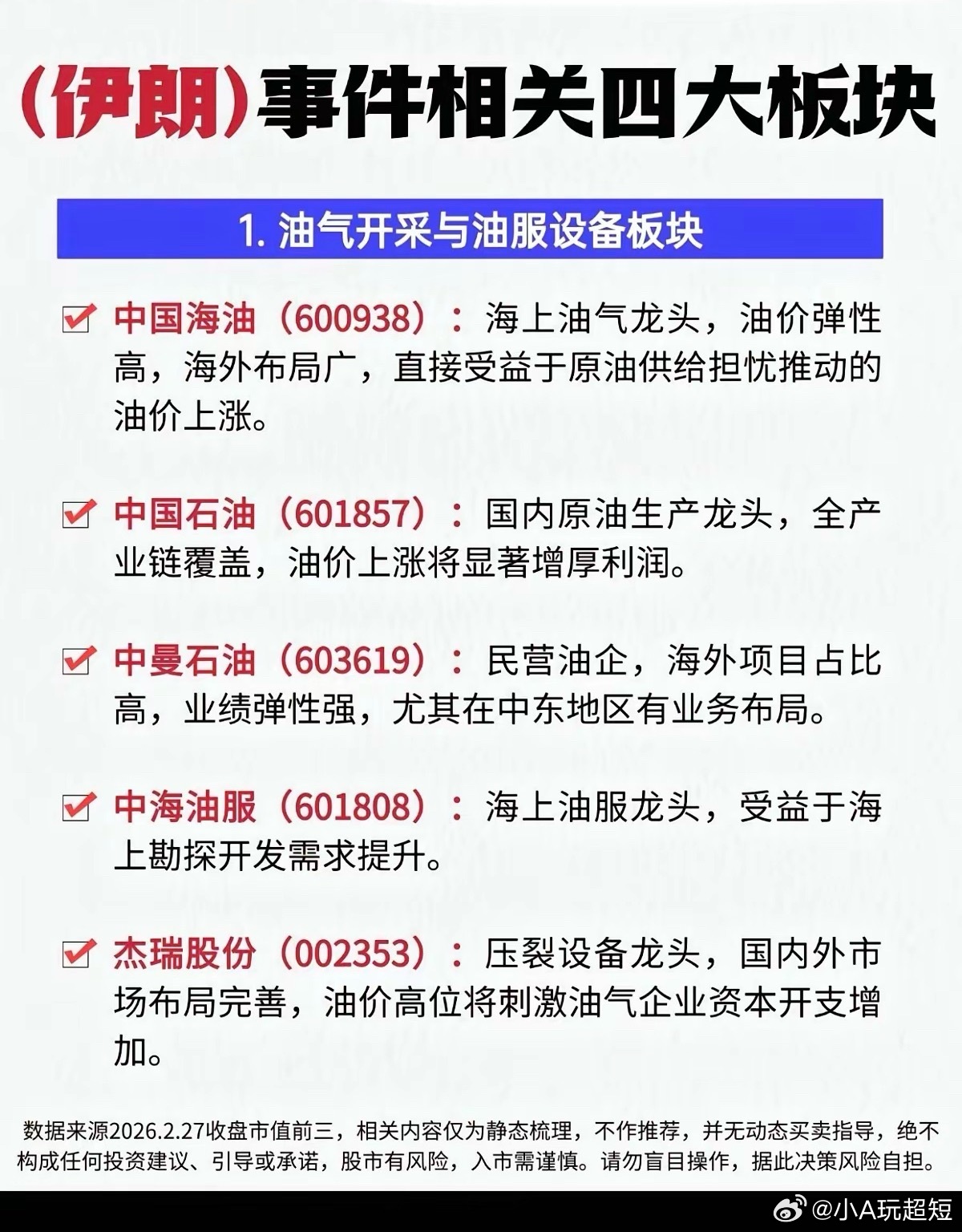 突发!伊朗战争概念!1.油气开采2.油气设备3.油运,港口4.煤炭,煤化工5.战